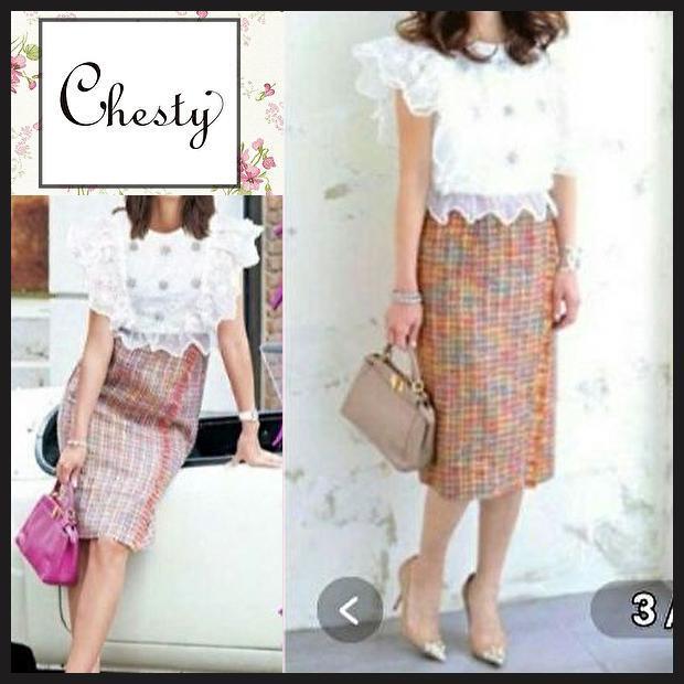 【未使用タグ付き】Chesty ワンピース レース 結婚式 セレモニー ビジュー チェスティー ツィード 25000円 お呼ばれ 匿名発送