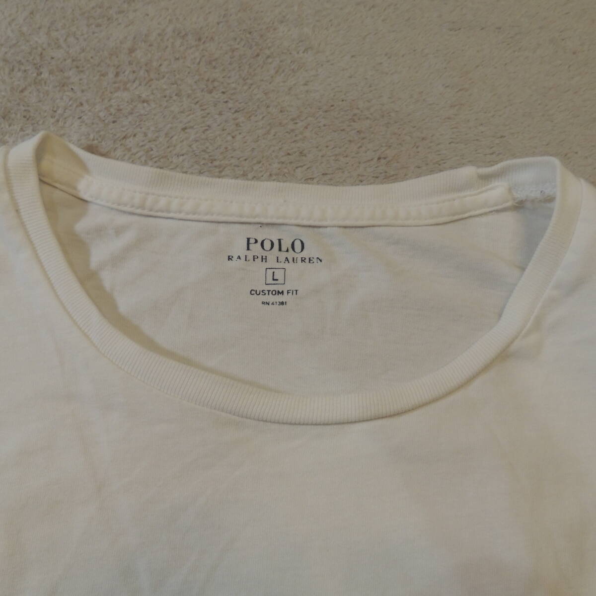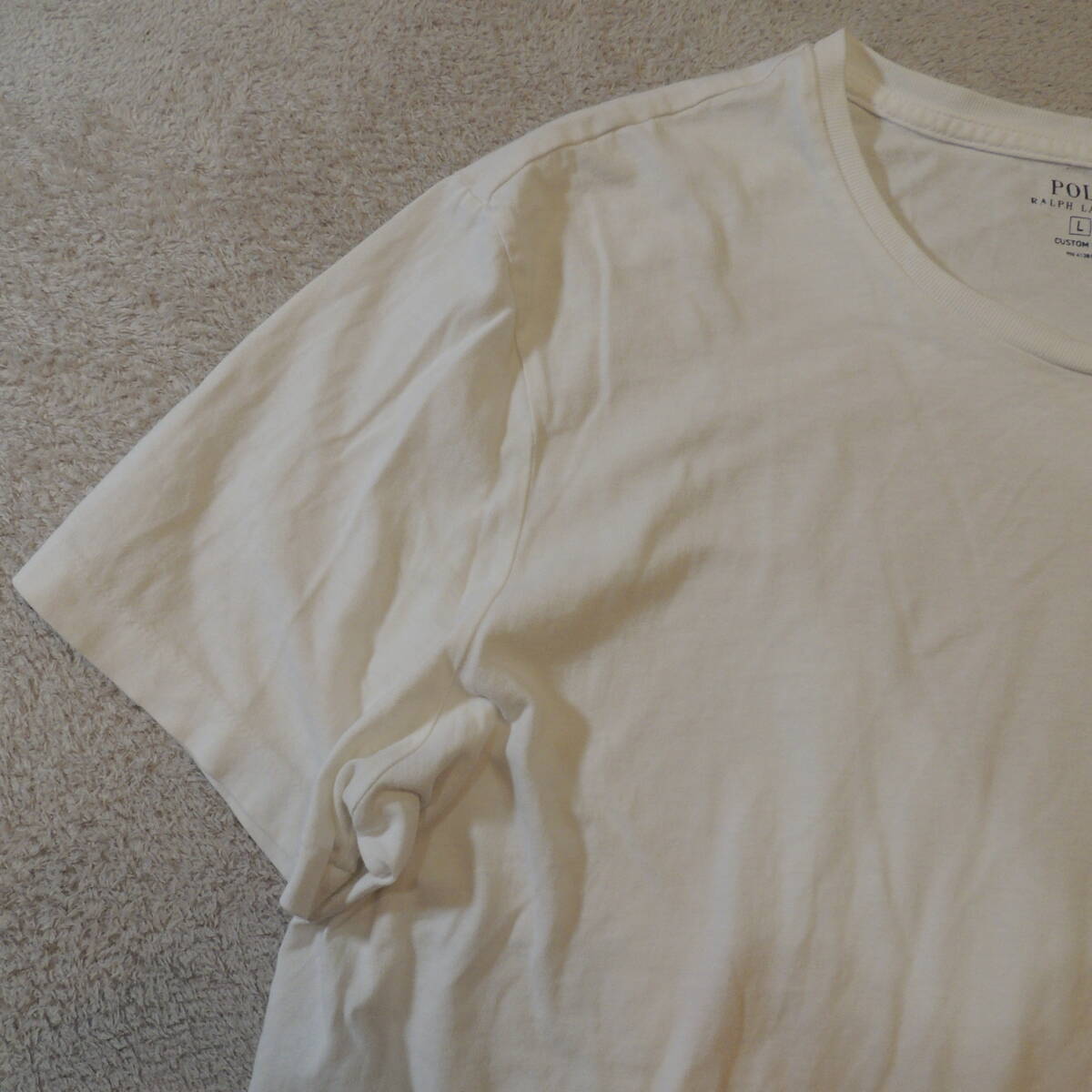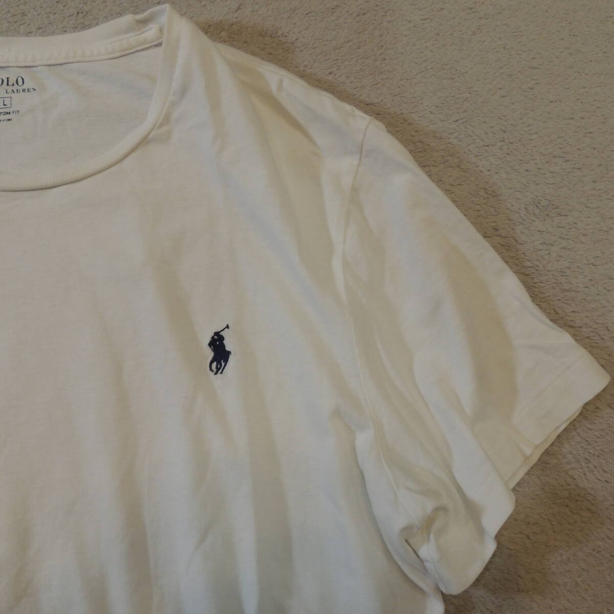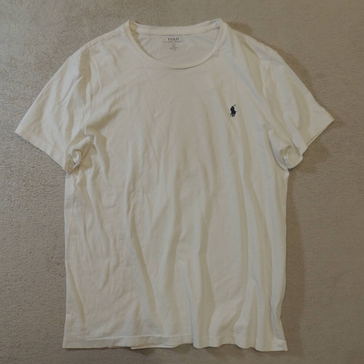 POLO RALPH LAUREN ラルフローレン 胸刺繍ロゴ クルーネック 半袖Tシャツ 純白 ホワイト メンズL