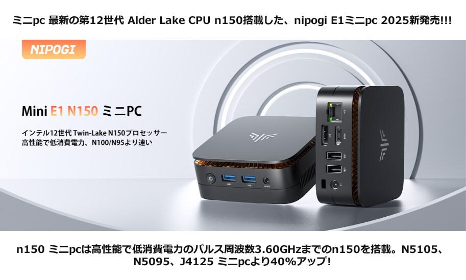 NiPoGi E1 ミニPC 2025年新型 N150 Windows11Pro 8GB+256GB 【購入明細あり】