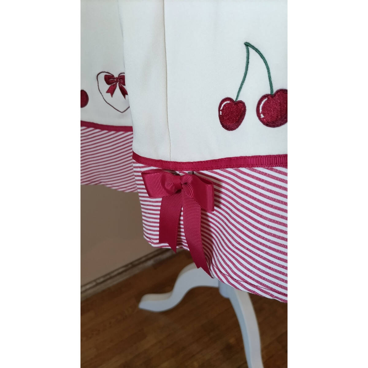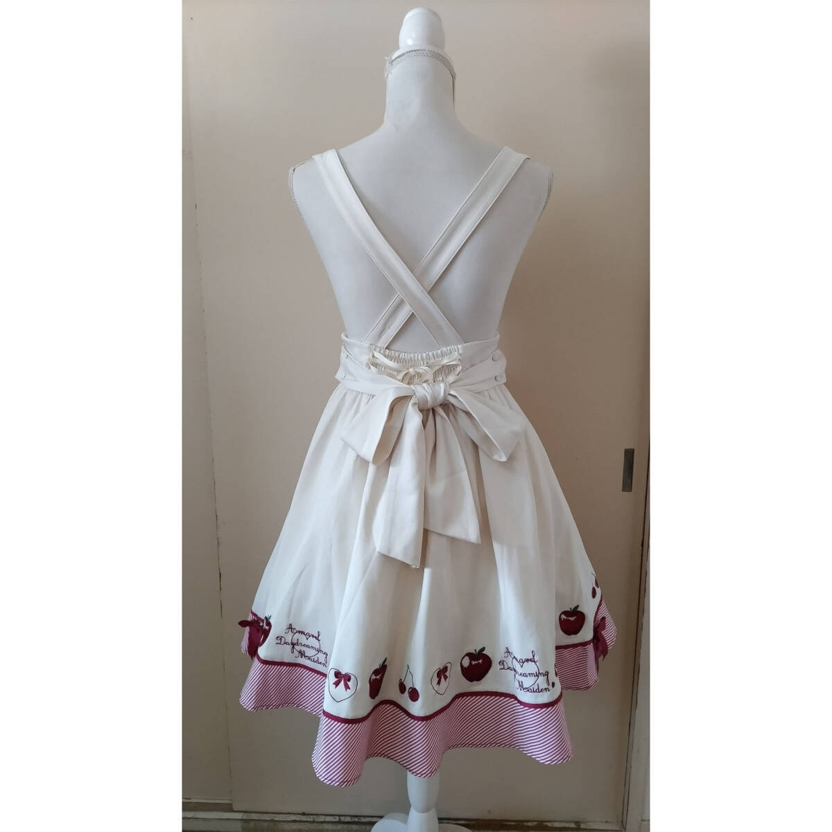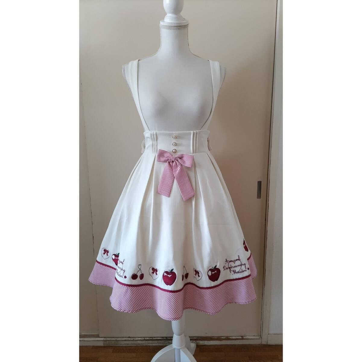 No.2758_アマベル_アイボリーチェリーリンゴ刺繍赤ストライプサススカート