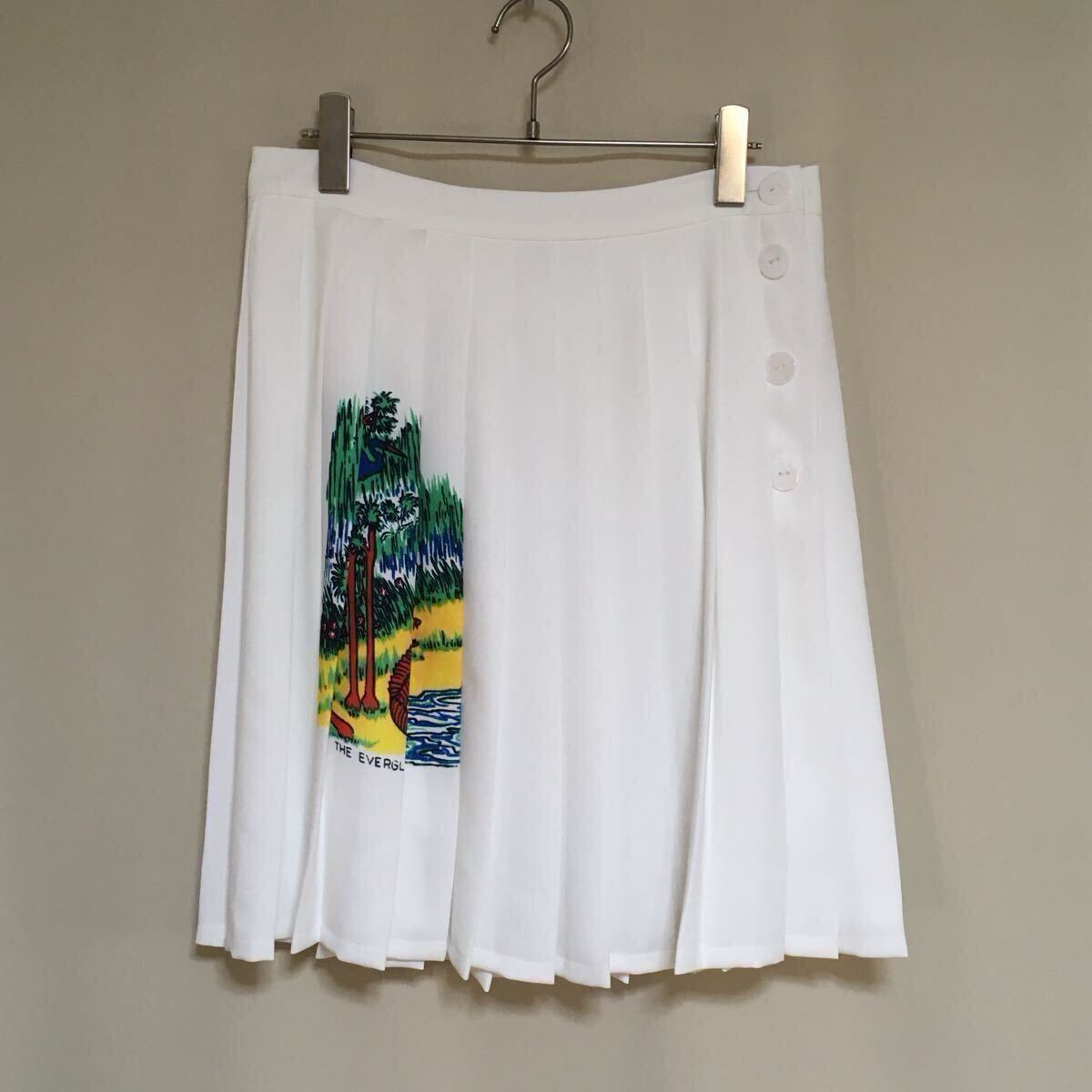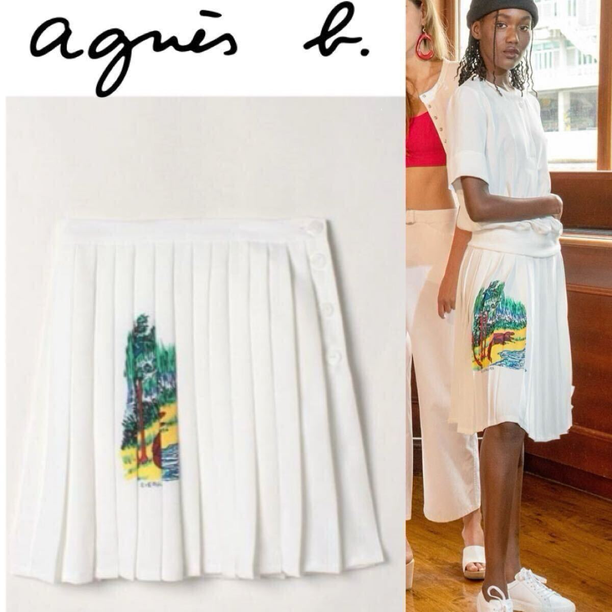 【極美品】agnes b. アニエスベー 定価4.4万 洗える NS97 JUPE プリーツスカート 38/M〜Lサイズ相当 ホワイト エバーグレーズ ワニプリント
