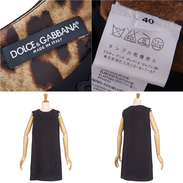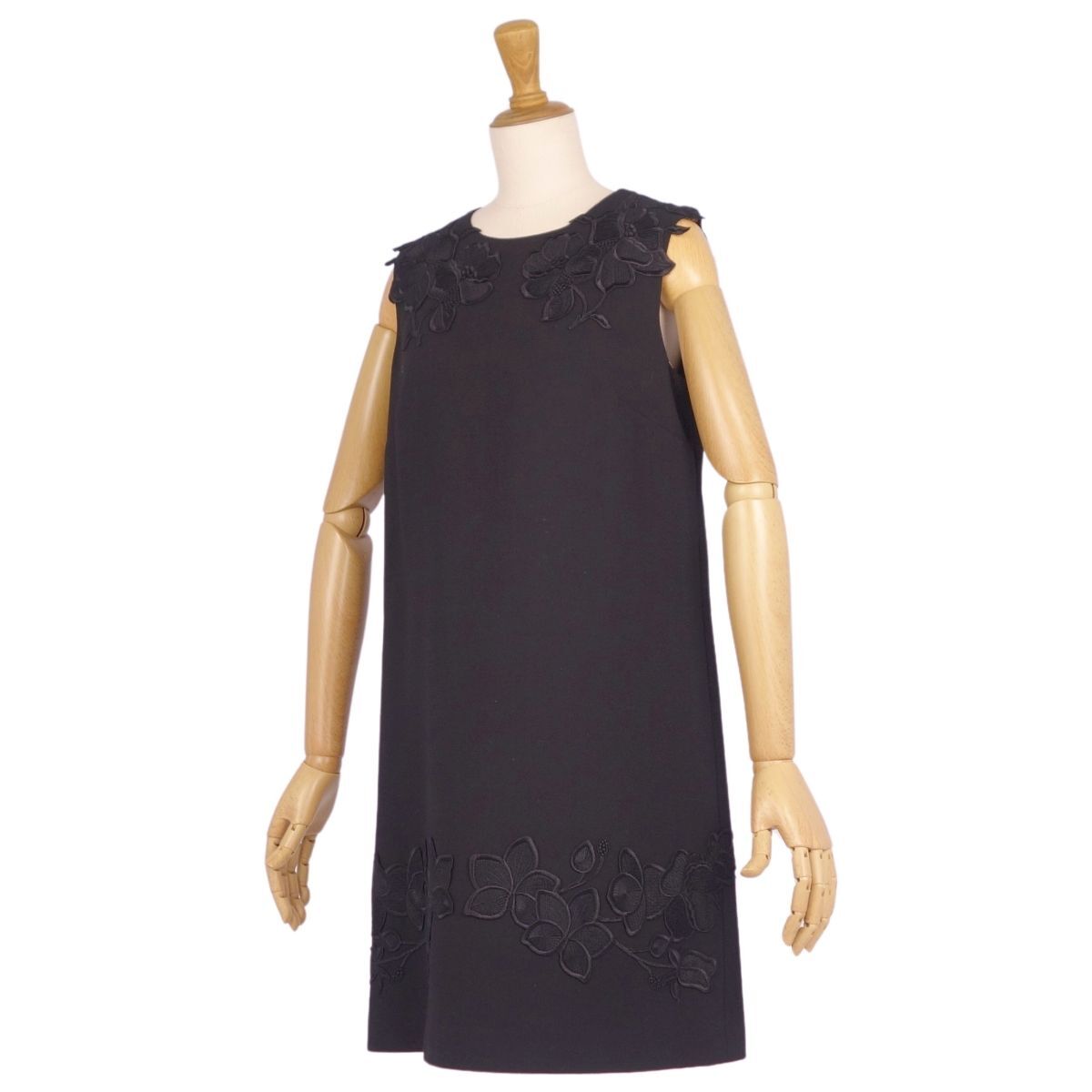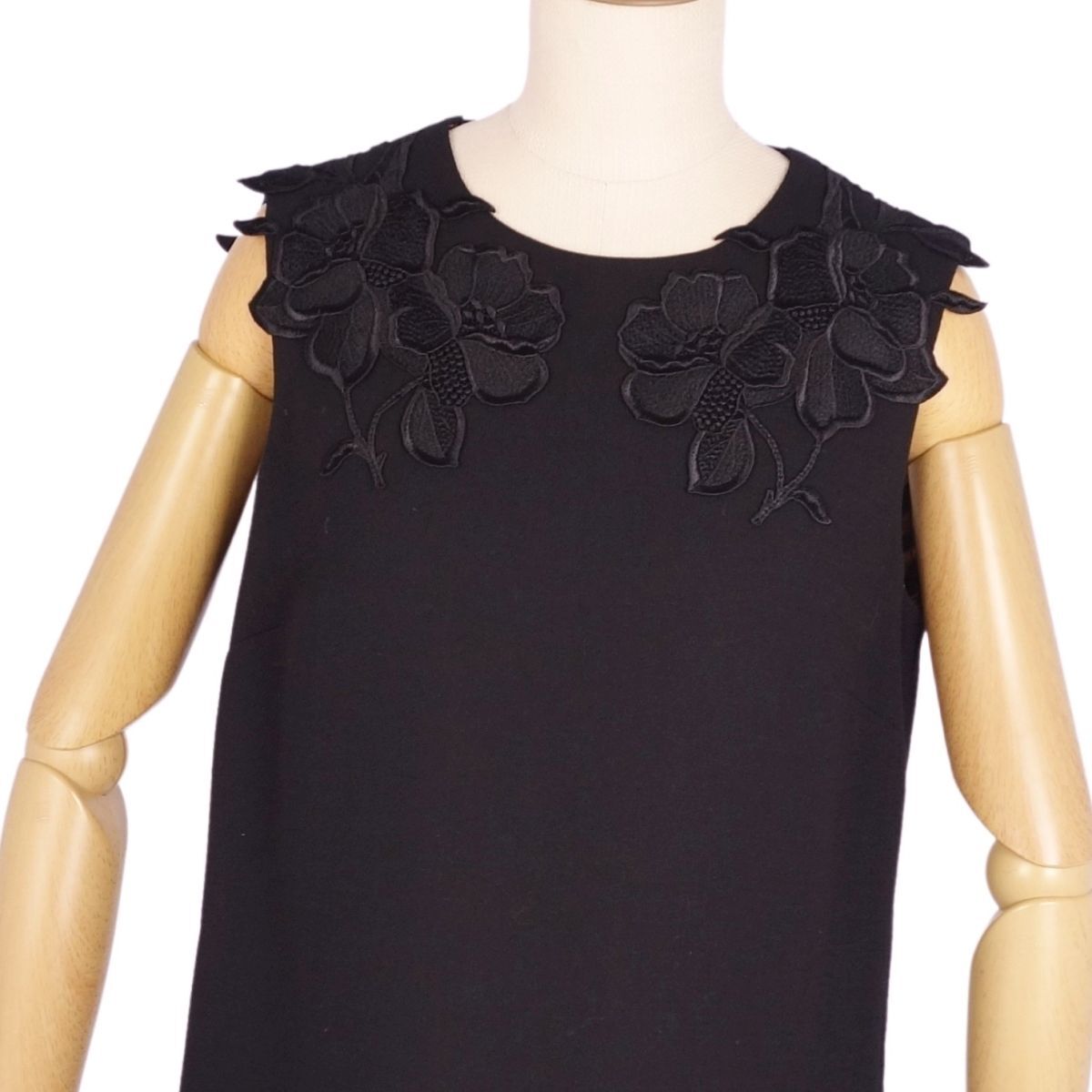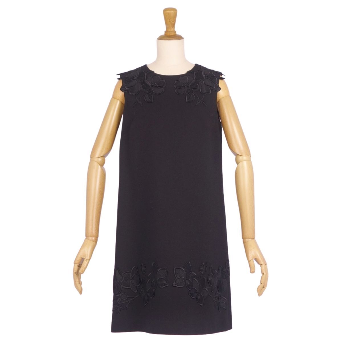極美品 ドルチェ&ガッバーナ DOLCE&GABBANA ワンピース ドレス ノースリーブ 花柄 刺繍 ウール トップス 40(M) 黒 |