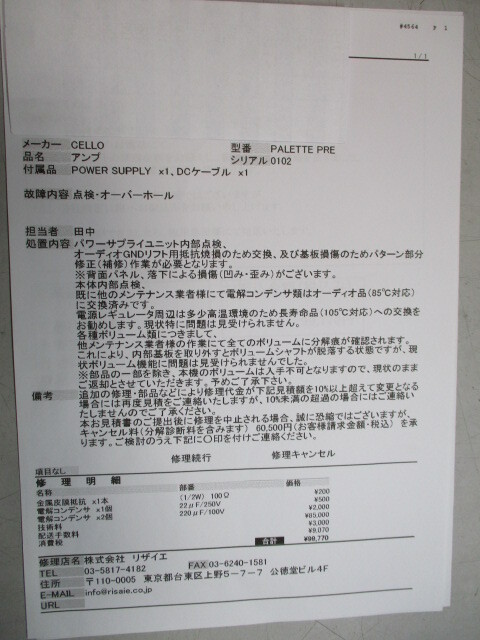 チェロ CELLO O/H済 パレット・プリアンプ パワーサプライ付き