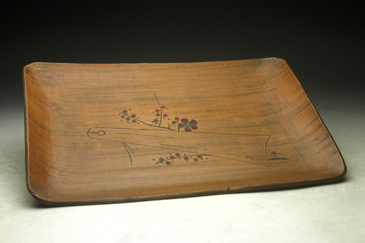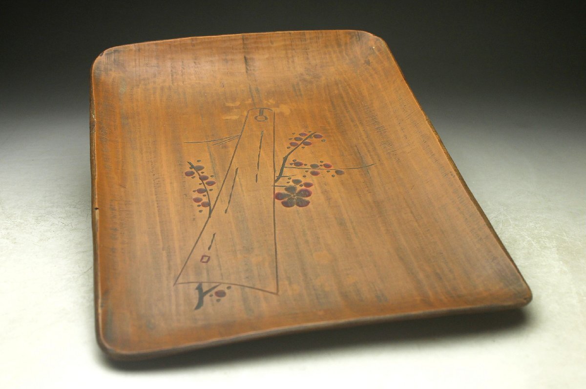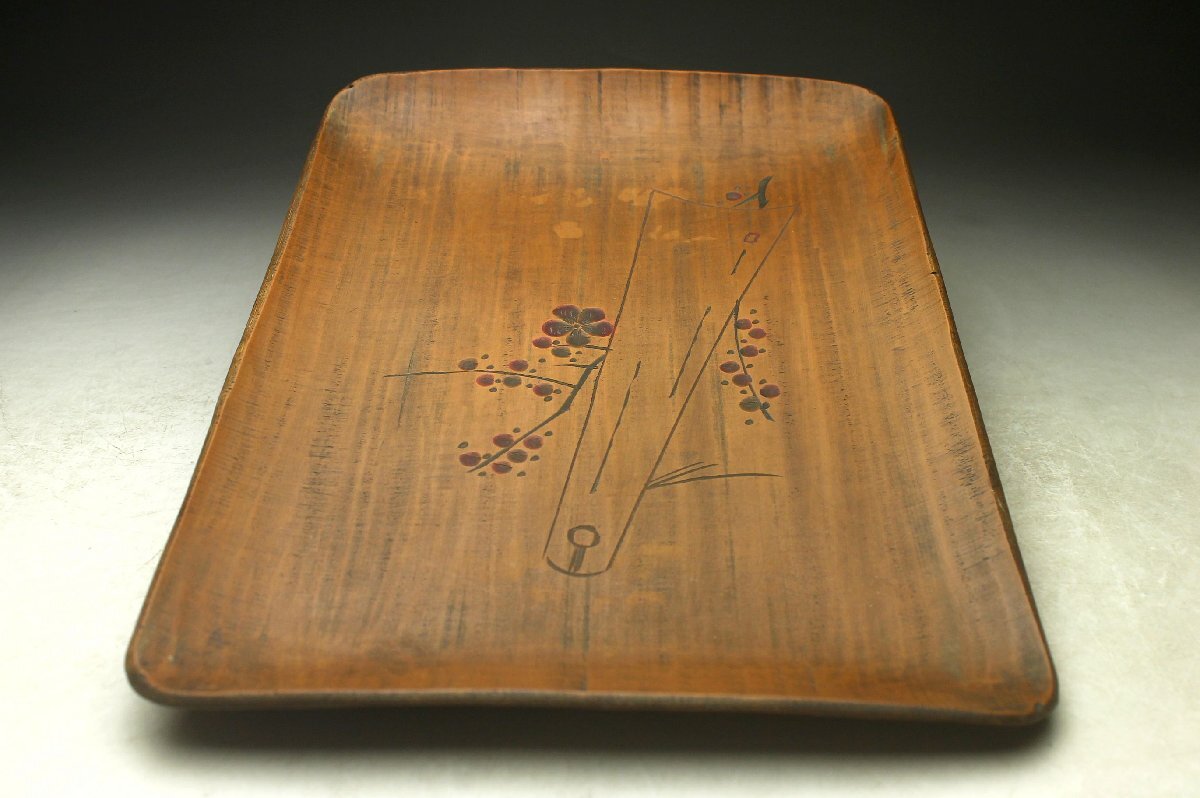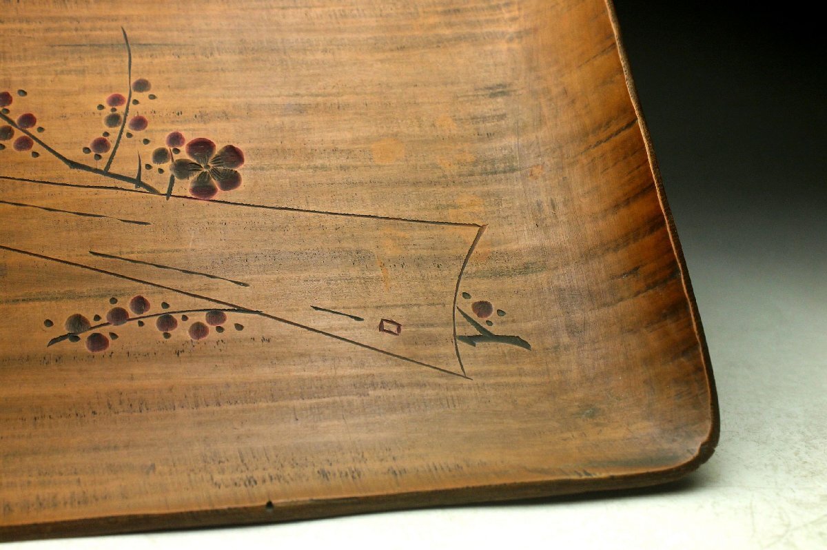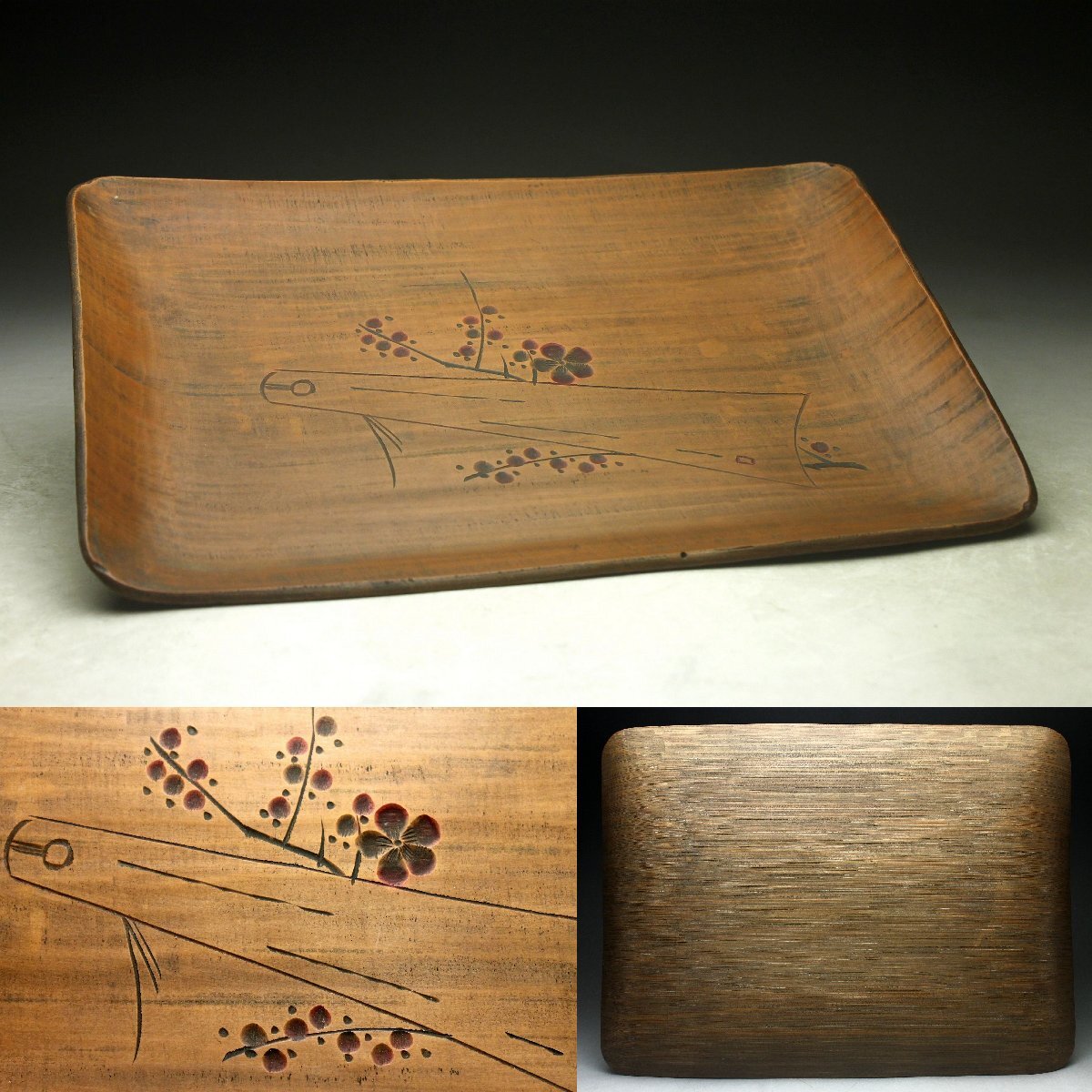 【余韻】 時代物 茶道具 古竹造 梅彫 菓子盆★無傷美品 骨董品<同梱可>