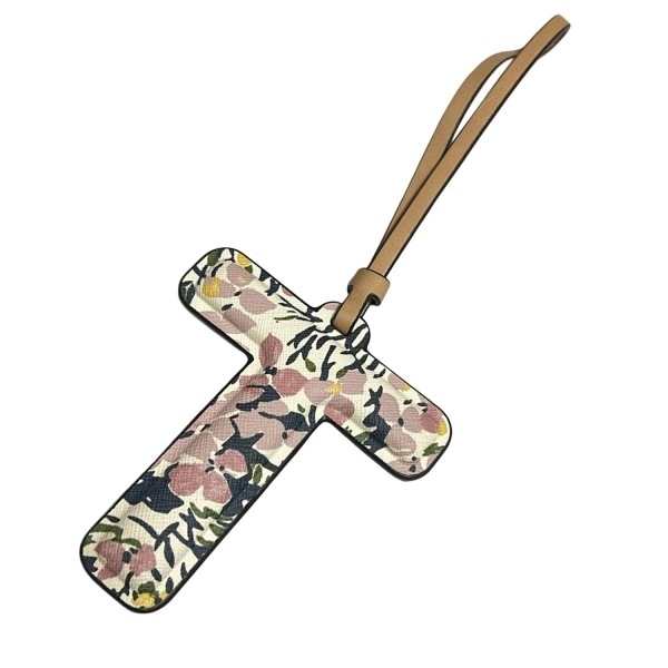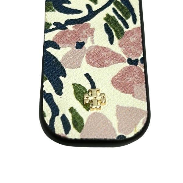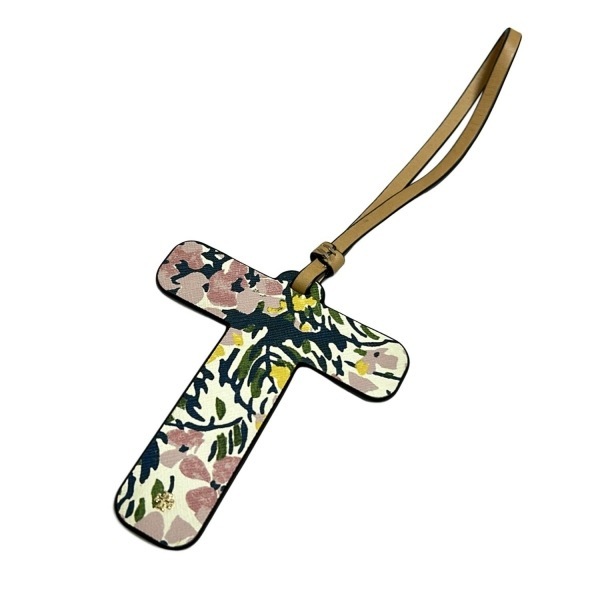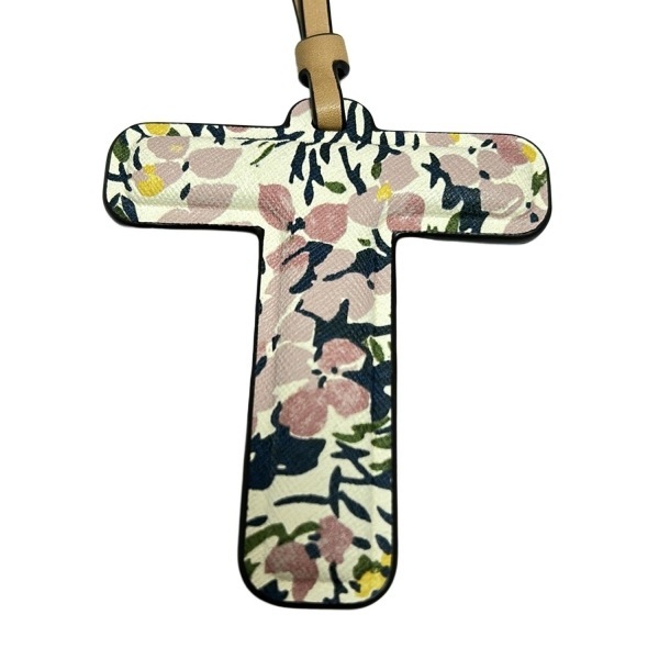 トリーバーチ TORY BURCH キーホルダー(チャーム) - レザー アイボリー×ダークネイビー×マルチ 花柄 新品同様 キーホルダー