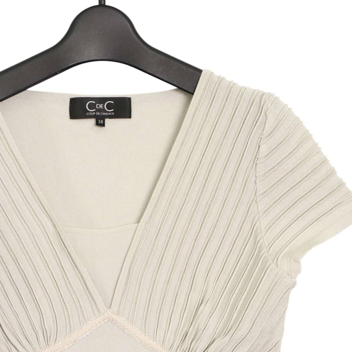 COUP DE CHANCE クードシャンス 春夏 リブ 切替★ ニット フレンチスリーブ カットソー セーター Sz.38 レディース 日本製