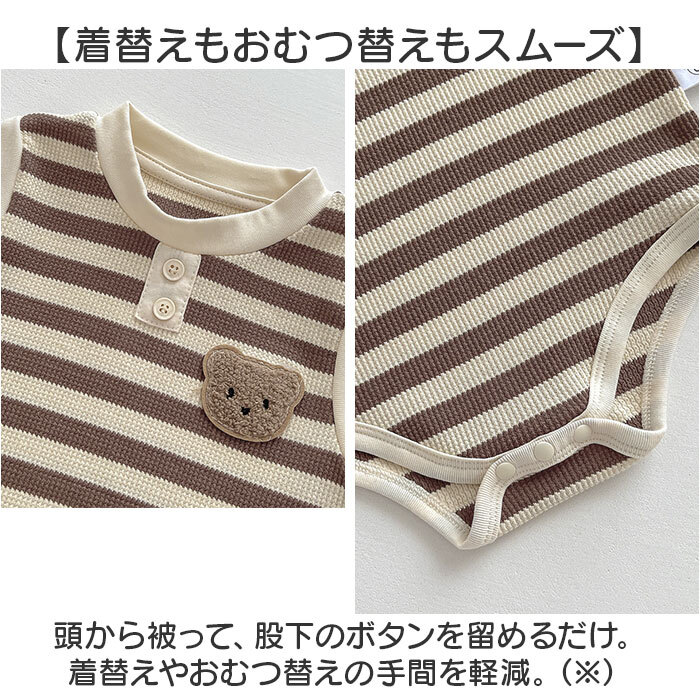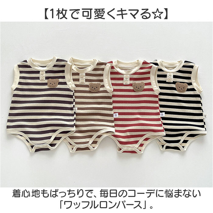 | 商品説明 | ・・【デイリーに活躍する味方】 ・・1枚で可愛くキマる☆着心地もばっちりで、毎日のコーデに悩まない「ワッフルロンパース」。 ・【すっぽりカバー!ロンパースタイプ】 ・上下一体型のロンパース。めくれ上がりやズレを防ぎ、お腹や足の冷えもガード。 ・【着替えもおむつ替えもスムーズ】 ・頭から被って、股下のボタンを留めるだけ。着替えやおむつ替えの手間を軽減。 ・(※)襟元ボタンはデザインです。 ・【ポコポコ立体的なワッフルボーダー】 ・立体感のあるワッフル生地&ボーダー柄。シンプルでナチュラルな仕上がり☆ ・【デリケートな肌に触れても安心】 ・チクチク感せず、サラッと軽いコットン混紡素材。ムレにくく、汗っかきな赤ちゃんにぴったり◎ ・【ストレッチ素材で優しくフィット】 ・ぐ~んと伸びて締め付け感ゼロ。袖や裾もゆったり、動きを妨げないノースリーブロンパース。 ・【愛らしいクマさんにほっこり】 ・クマさんのワッペンを胸元にON☆着用した姿も可愛く、優しい雰囲気をプラス。 ・【お揃いやリンクコーデもおすすめ】 ・男の子も女の子も着こなせるデザイン。定番ボーダー柄は、家族揃ったリンクコーデにも♪ |
