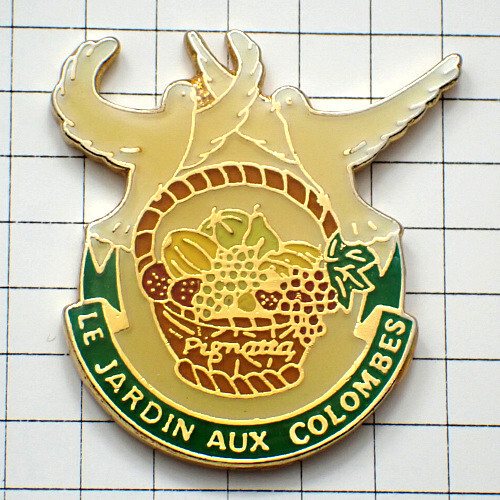"ピンバッジ・白い鳩2羽と果物のカゴ籠ブドウ洋梨"の商品説明 | |