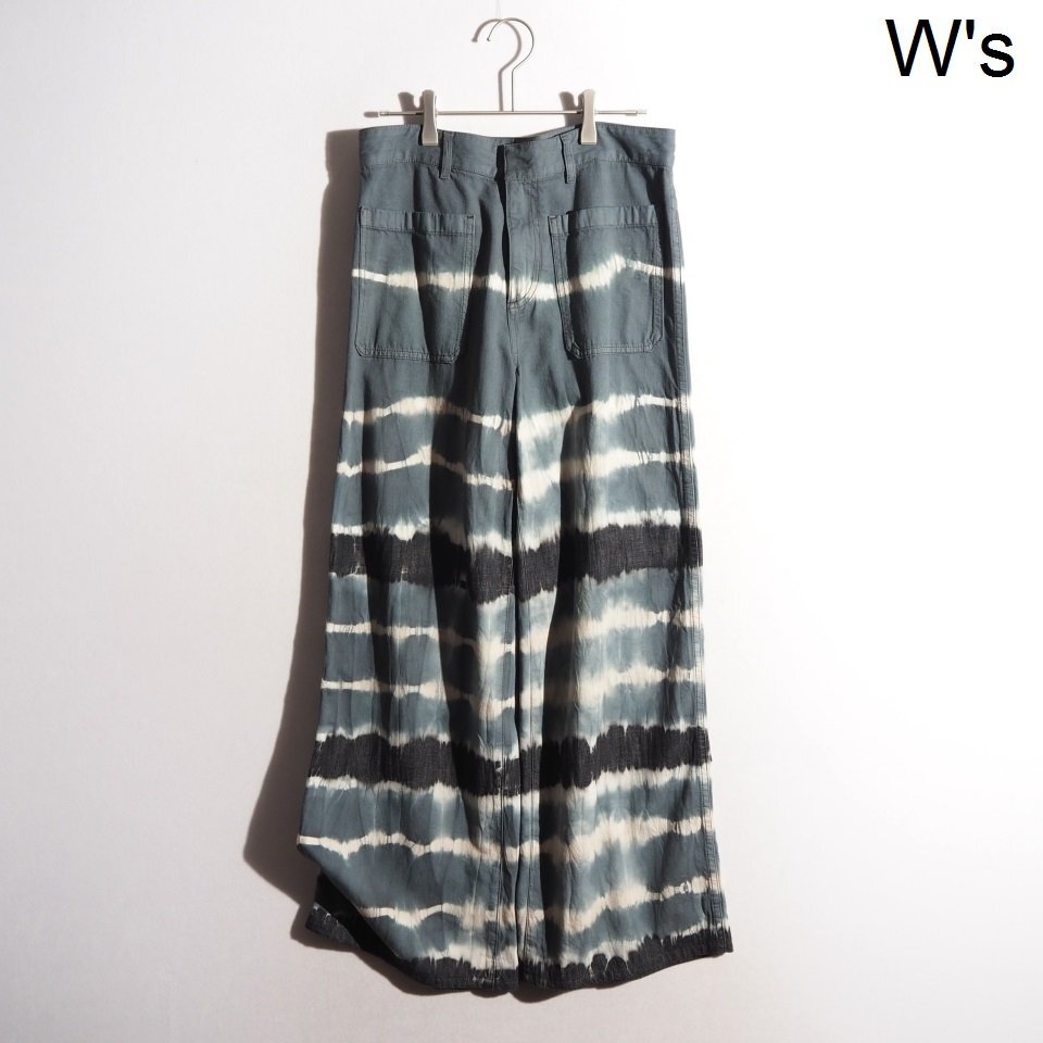 タイダイボーダー ライトオンスデニム ワイドパンツ グレー F36