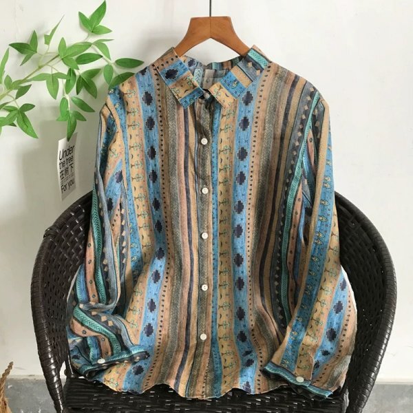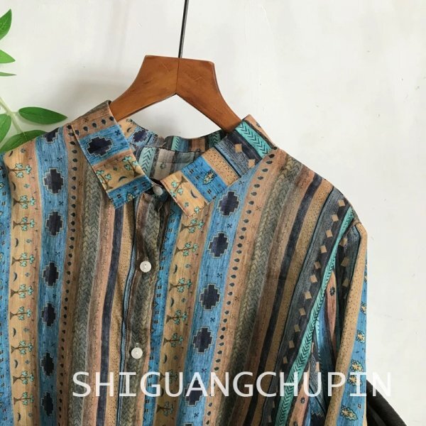 sg 0707 チュニック ワイシャツ 麻100% ゆったり オシャレ フリーサイズ ナチュラル 紫外線防止 通気性肌触り抜群 サラサラ ストライプ柄3