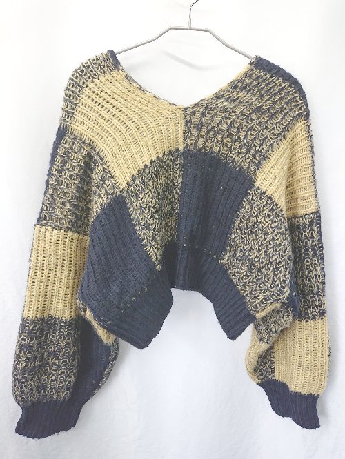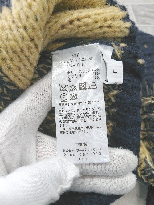◇ ⊇ KBF アーバンリサーチ チェック ショート丈 長袖 ニット カーディガン サイズONE ネイビー ベージュ系 レディース E