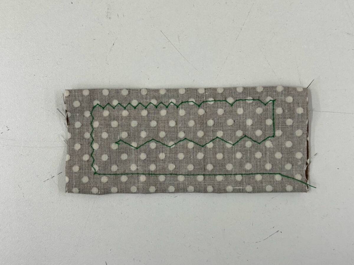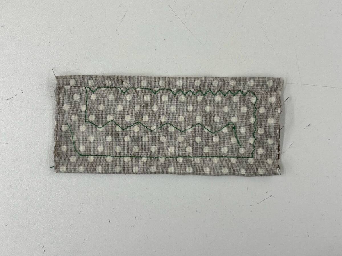 縫い目は写真9・10枚目(表・裏)を参考にして下さい。試し縫いをした生地をセットした状態で発送致します。