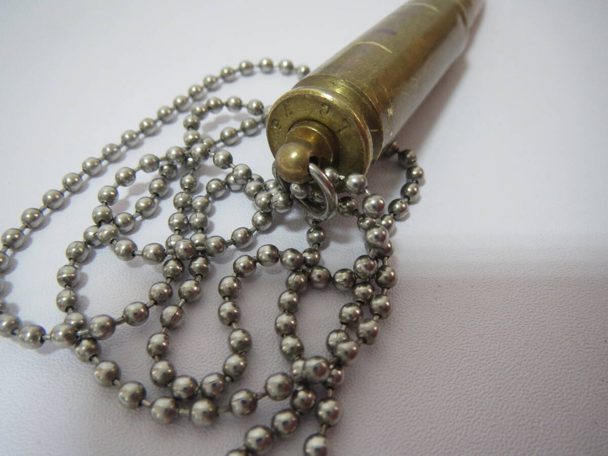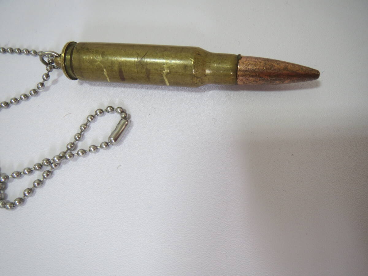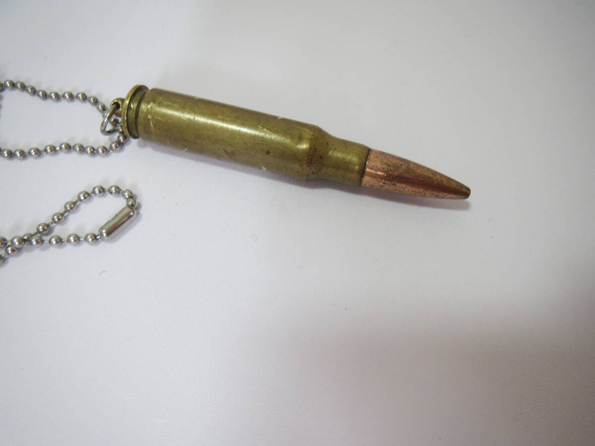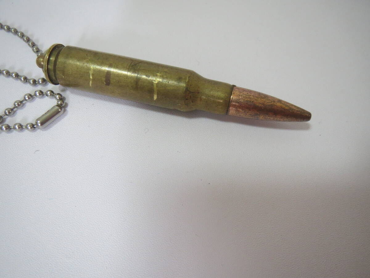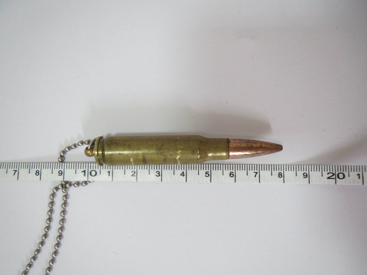 7.62mm 空薬きょうにレプリカ弾頭を取り付けたネックレスです。