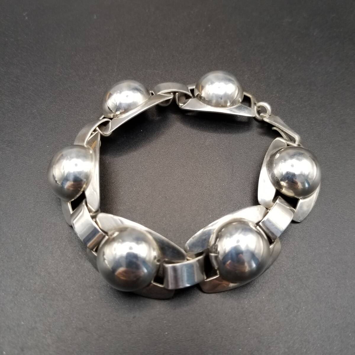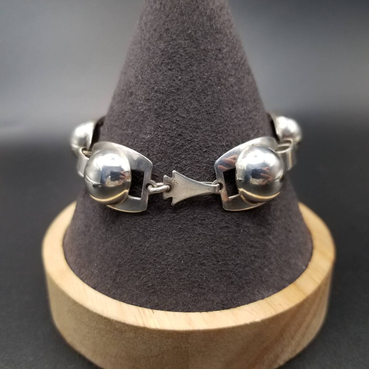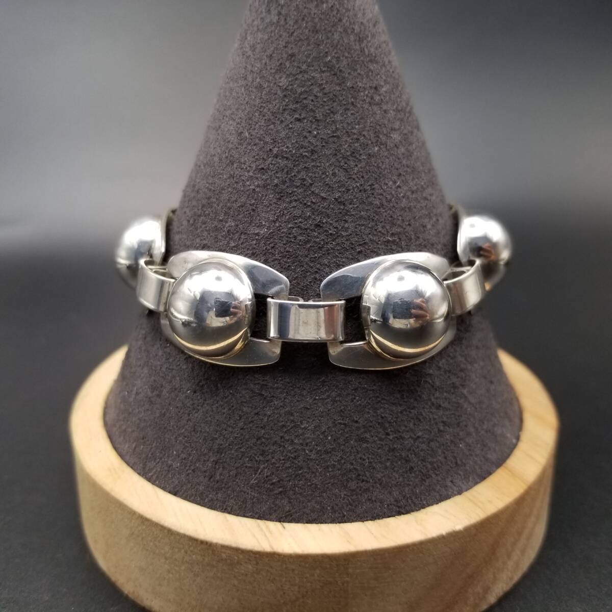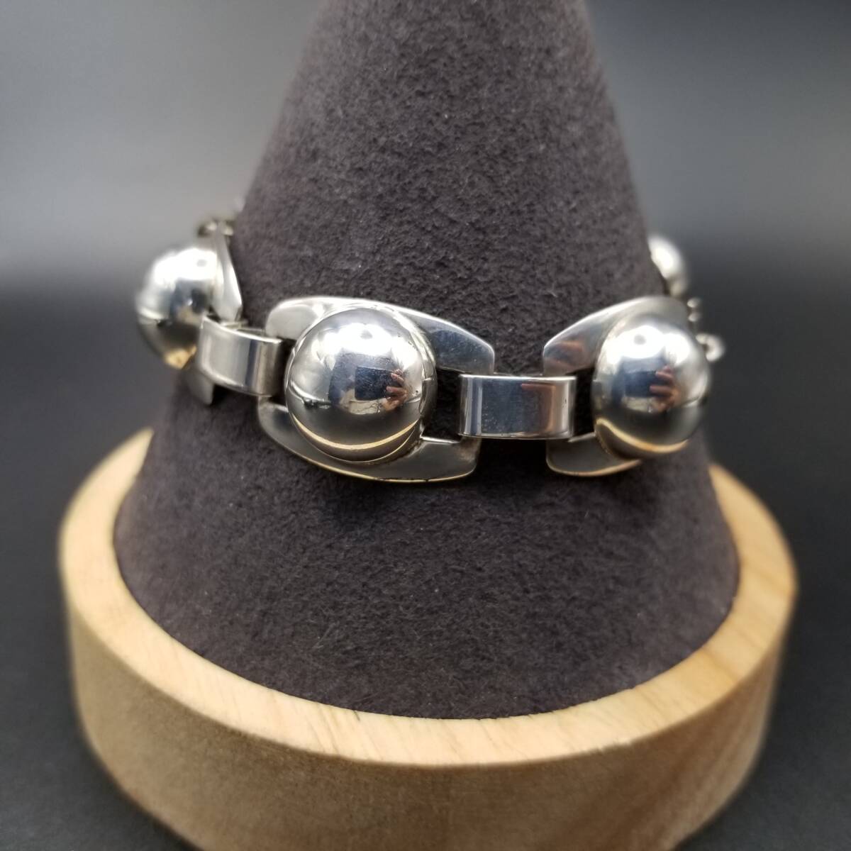 Bell Trading Post ボールチャーム パネルチェーン ヴィンテージ ブレスレット 925 シルバー 銀 ぷっくり 存在感 23-V