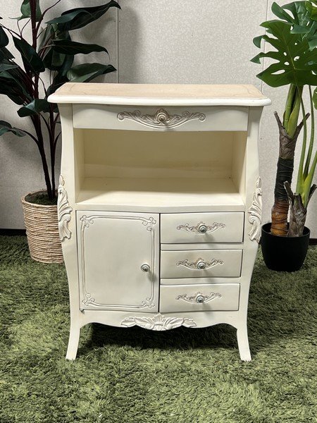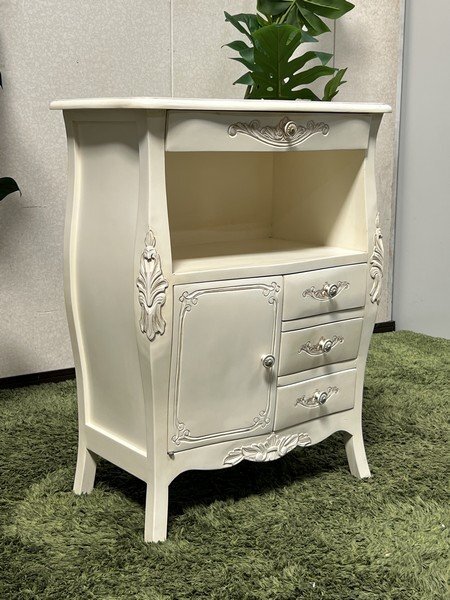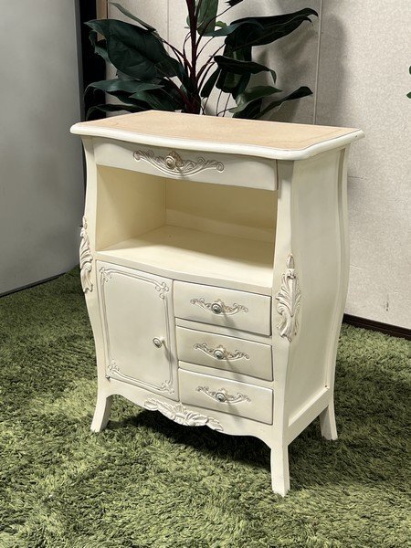 §【アンティーク調 電話/FAX台 チェスト コンソール 幅60cm 手彫り仕上げ 収納家具 ヨーロピアン 姫家具 】Q06450
