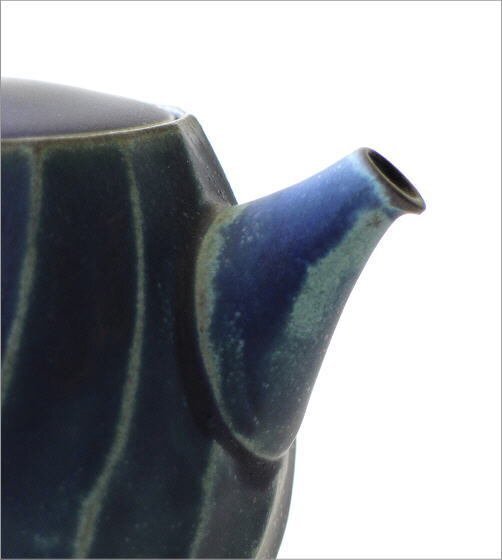 | ぽってりした胴と 持ちやすい大きなハンドル ちょこんと付いた小さな注ぎ口・・・ 個性的でオシャレな形と雰囲気の 素敵なポットです 深みのあるマットブルーのポットは 釉薬の窯変によって起こる 深みのある藍色やかすれた色合い ナナメに入れた太い鎬(しのぎ)模様の凹凸など、 手作り感があり、温かみを感じさせるポットです 小ぶりでも530ccとたっぷり入り お茶はもちろん、紅茶を淹れても似合いそう 商品名 : ねじり縞ポット ブルー 商品番号 : msg7497 全体サイズ(cm) : 幅17.5×奥行11.5×高さ11 容量(9分目) : 531cc 重量 : 340g 使用方法 : 電子レンジ)〇 食洗器)〇 オーブン)× 材質 : 半磁器 生産国 : 日本(波佐見) ※食器洗浄機内に設置する際は、器同士がぶつかると欠けやすい性質があります為、十分にご注意ください ※ステンレスメッシュの茶漉し付き ※商品の特性上、白い筋のような線がところどころ見られます ※陶器の裏面は多少ざらざらとしているため、テーブル等の擦り傷にご注意ください |