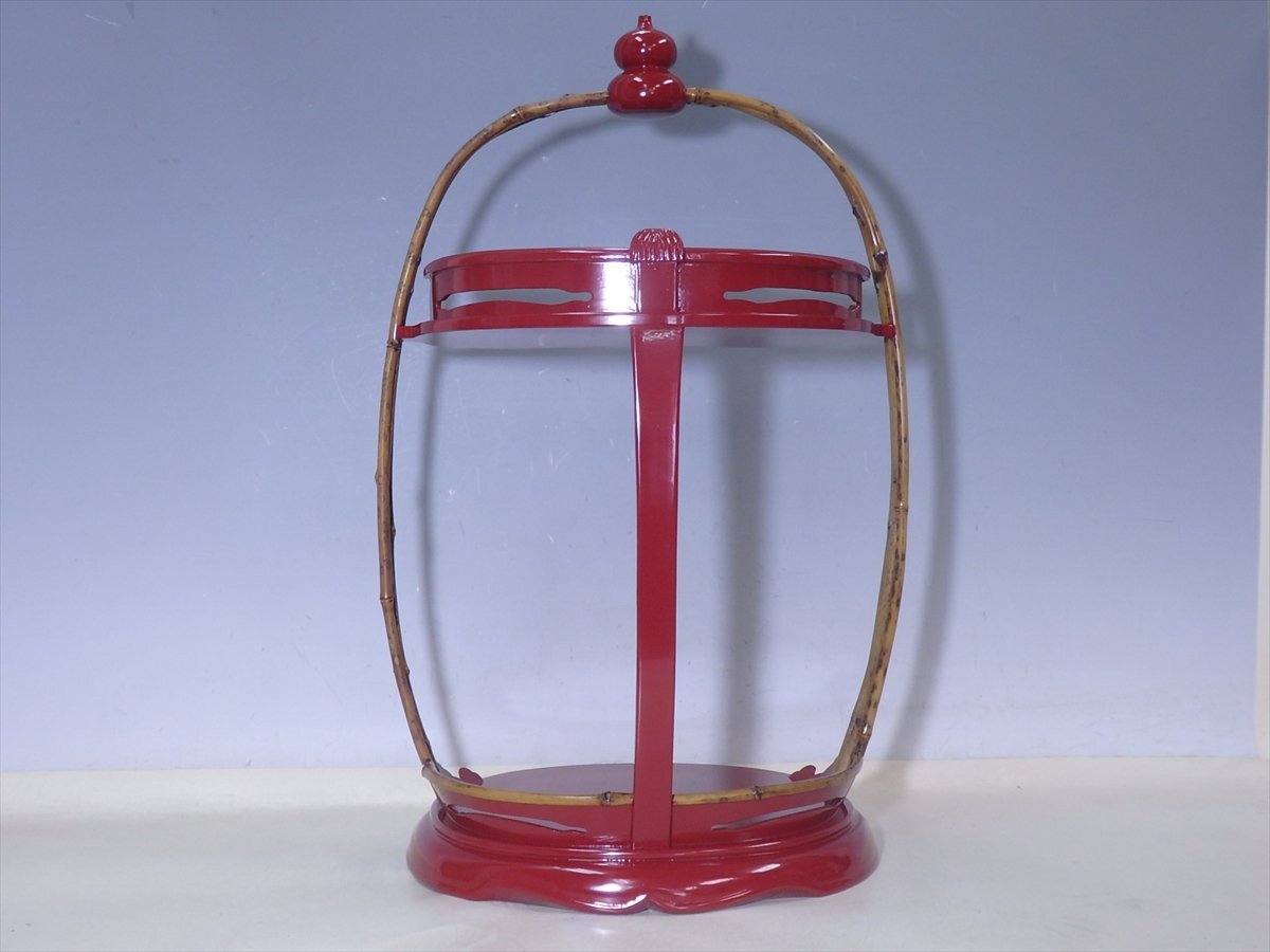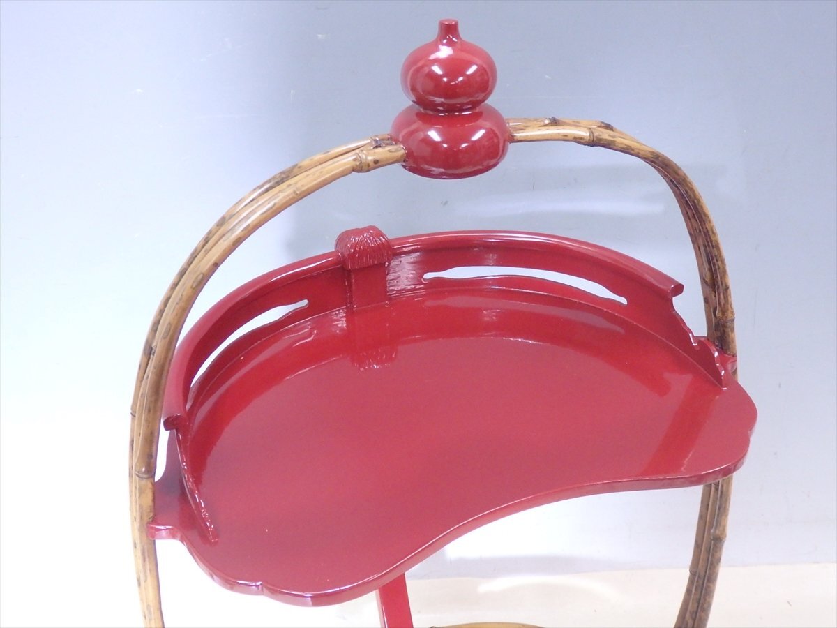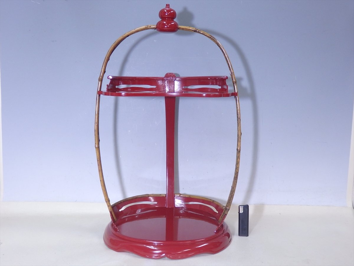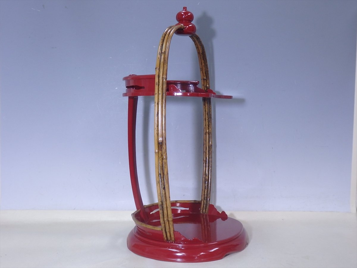 ★状態良好!【夕顔棚 紙箱入り】完成品 竹 朱塗り 木製漆器 幅37.8×奥行31×高さ59.3cm 煎茶道具 家具 茶の湯の棚 中国茶器