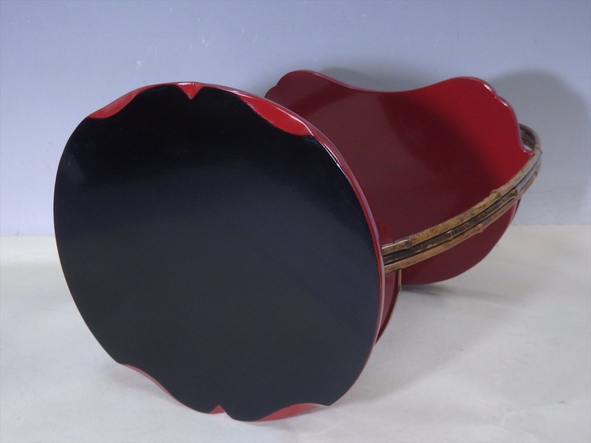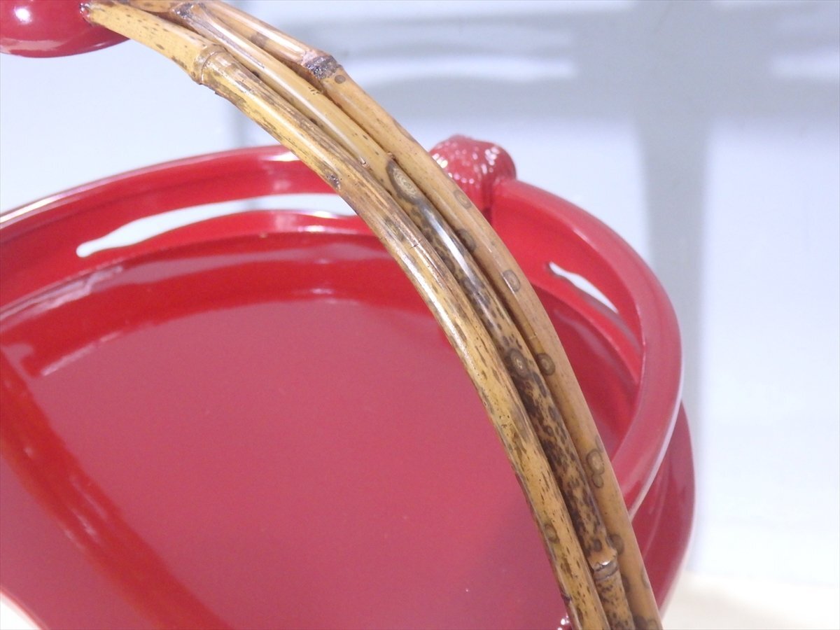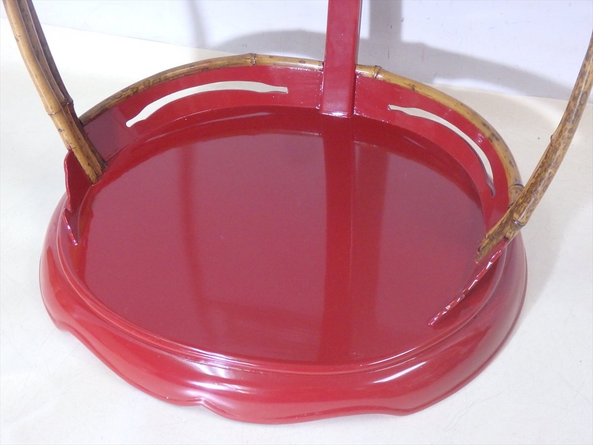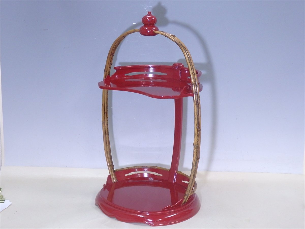 ★状態良好!【夕顔棚 紙箱入り】完成品 竹 朱塗り 木製漆器 幅37.8×奥行31×高さ59.3cm 煎茶道具 家具 茶の湯の棚 中国茶器