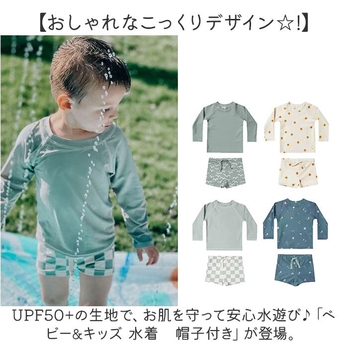 ・UPF50+の生地で、お肌を守って安心水遊び♪「ベビー&キッズ 水着 帽子付き」が登場。