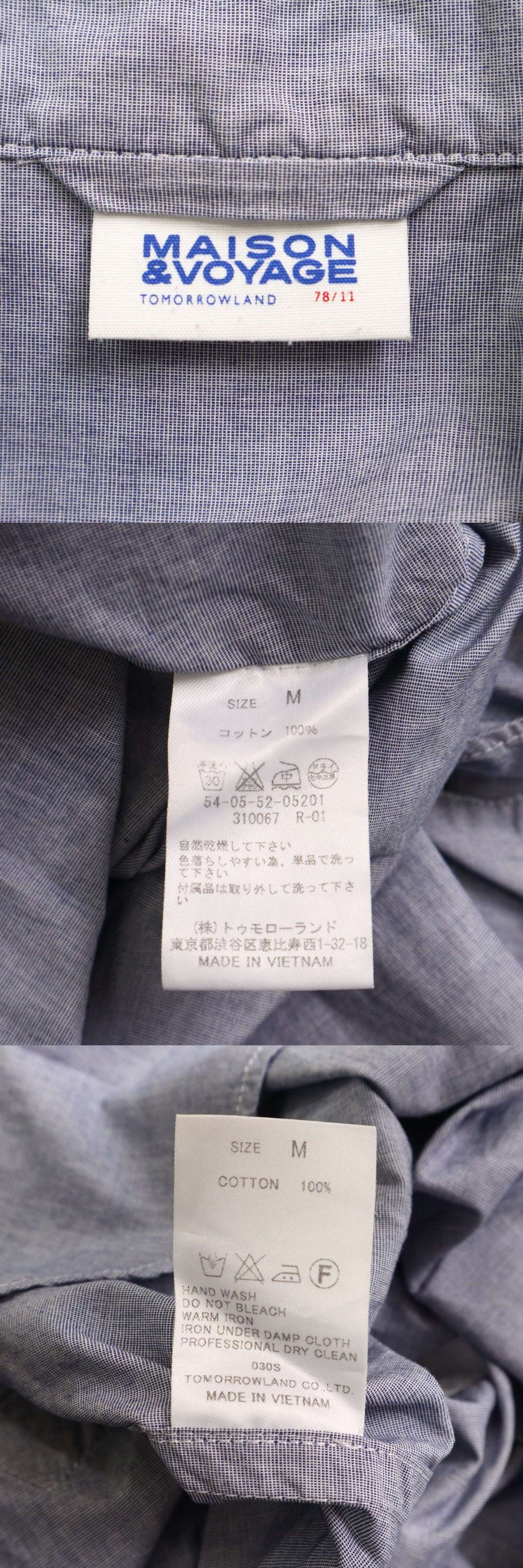 MAISON & VOYAGE トゥモローランド 春夏★ 7分袖 プルオーバー カプリ シャツ Sz.M メンズ