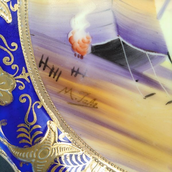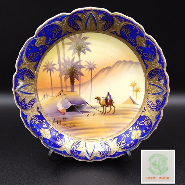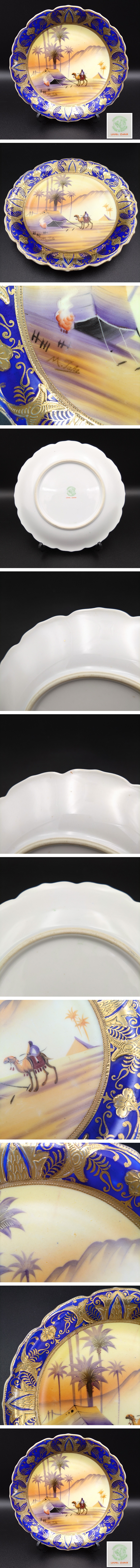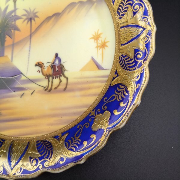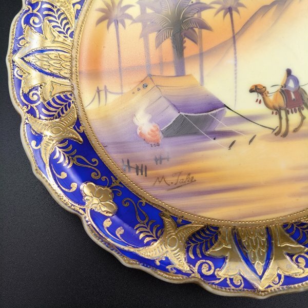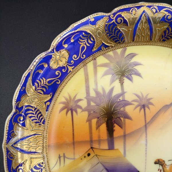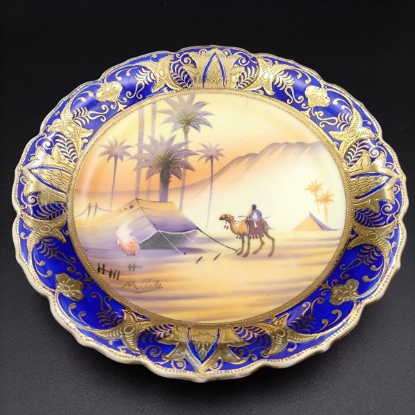 【希少】オールドノリタケ アラビアン風景図 絵皿 里帰りアンティーク 金彩 コバルトブルー 手描き サインあり H126Y002
