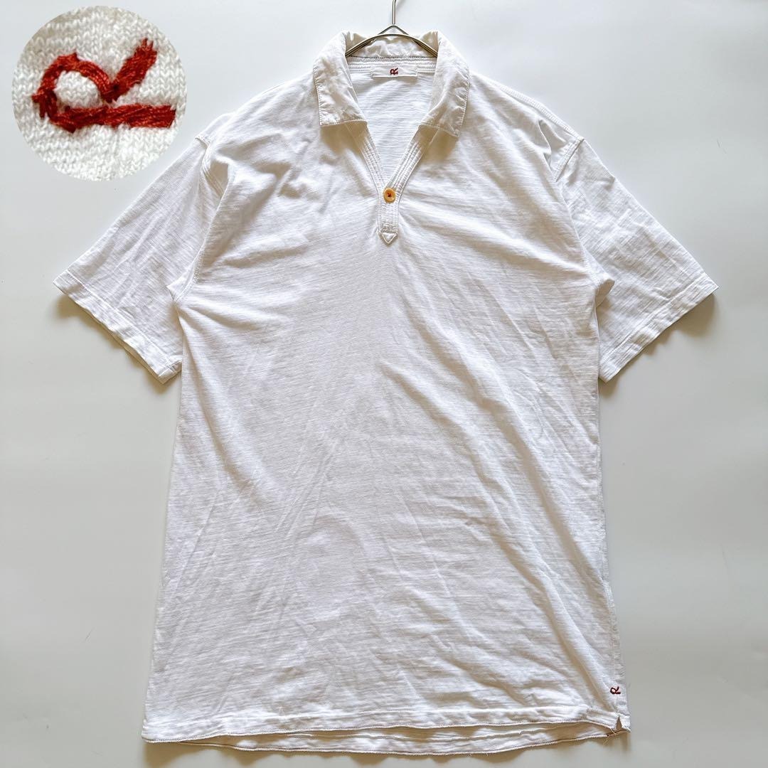 45R フォーティファイブアール ポロシャツ スキッパーシャツ 半袖 ホワイト 白 R刺繍 コットン100% レッドステッチ 日本製 ヴィンテージ風 メンズ レディース ユニセックス 3サイズ 無地 カジュアル