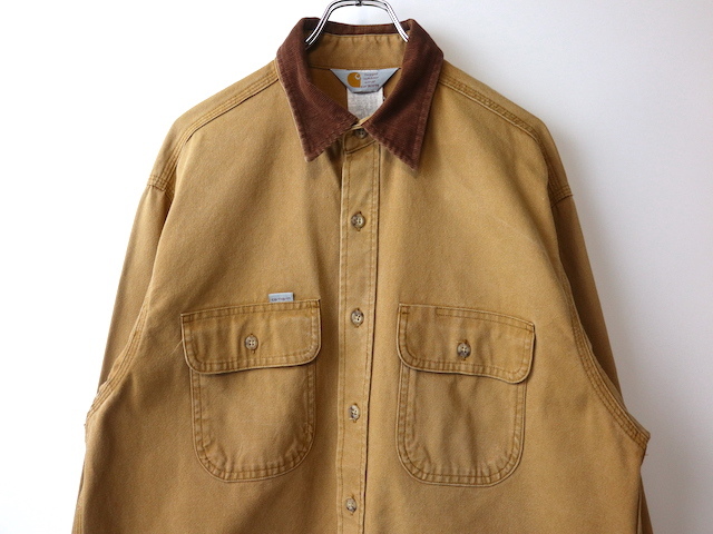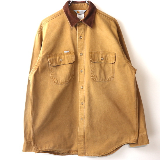 90s Carhartt カーハート ダック 長袖 ワーク シャツ(メンズ L)ヴィンテージ オールド 襟 コーデュロイ