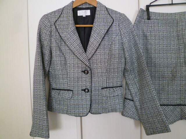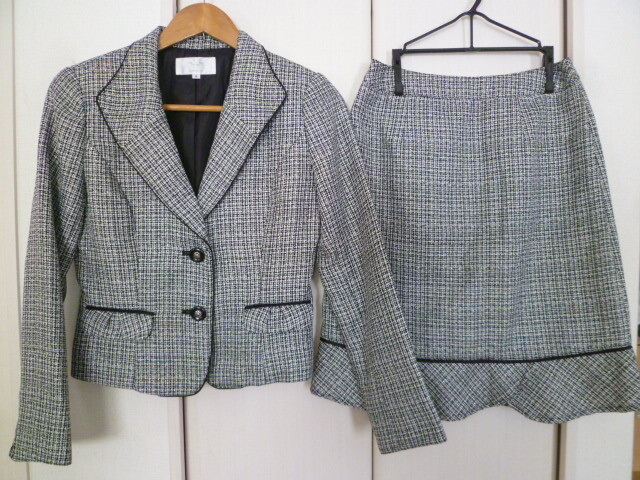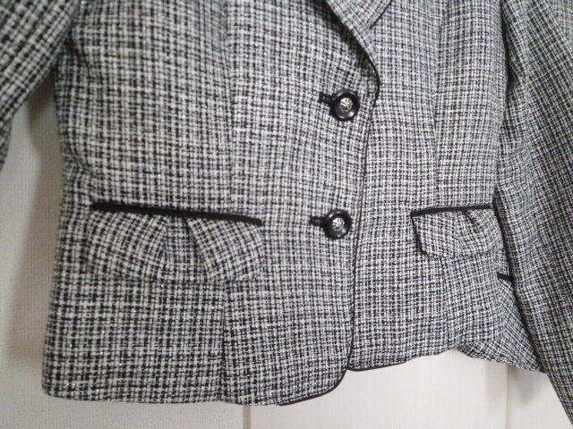 SAVIem◇黒×白モノトーン系ラメ後ろ2段フリルジャケットフリルスカート上下セットスーツ9AR/9号卒業式入学式フォーマル◇ST731