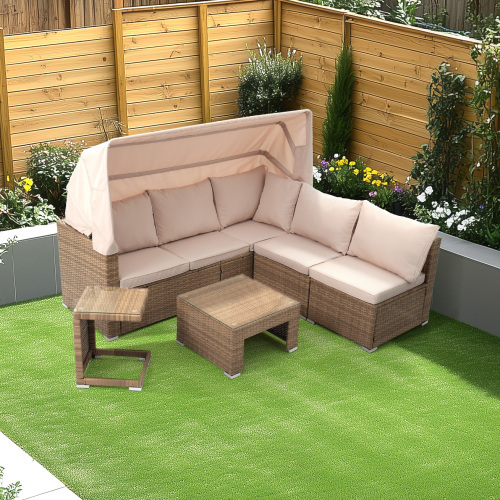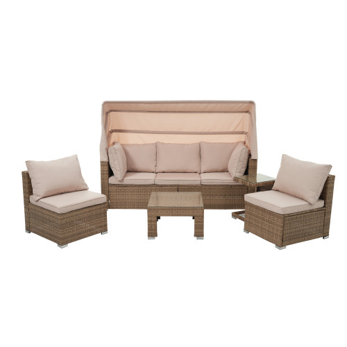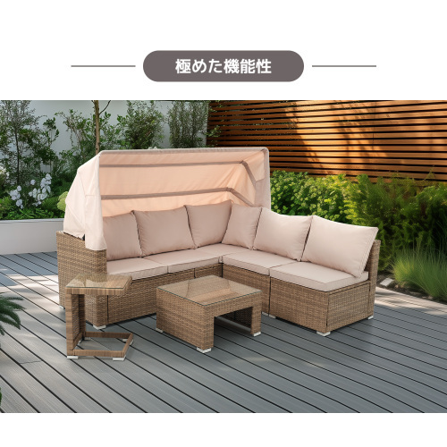 パラソル付き ガーデンファニチャー 5点 ガーデン テーブル チェアー ラタン調 テーブル 家具 樹脂 楽組 ホテル カフェ ベランダ テラス