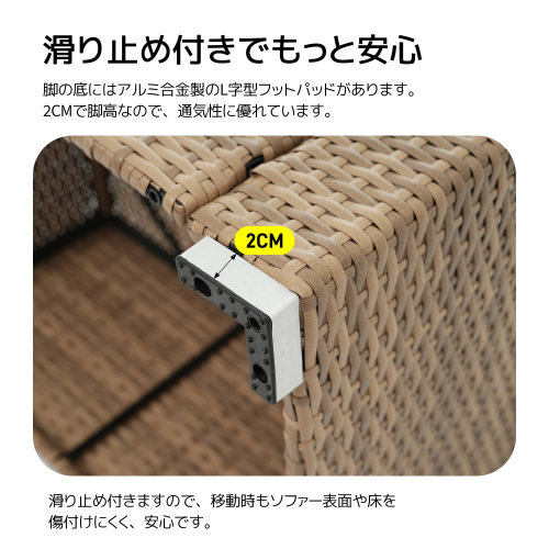 滑り止め付きますので、移動時にもソファー表面や床を傷付けにくく、とても安心です。