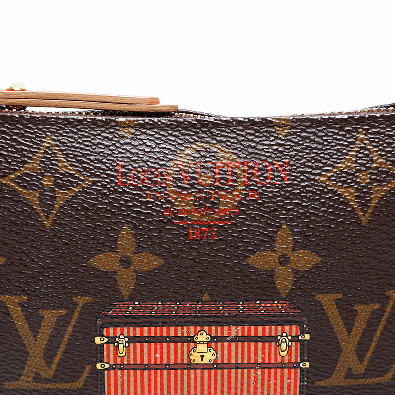 極美品 LOUIS VUITTON 2013年製 モノグラム ミニポシェット アクセソワール トランクプリント ハンドバッグ ブラウン