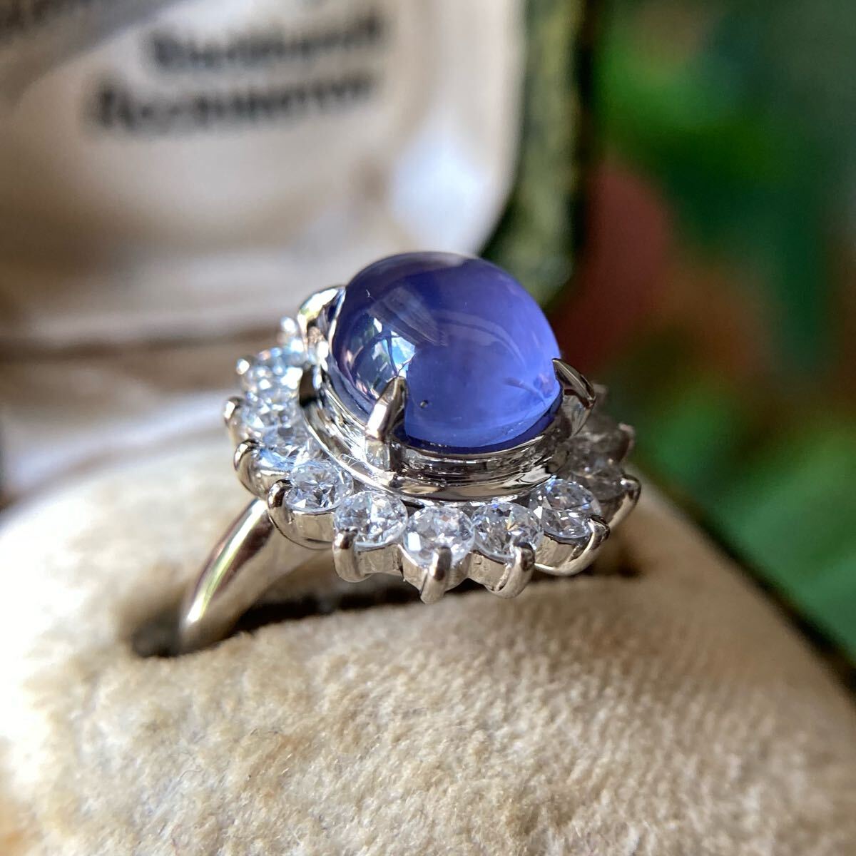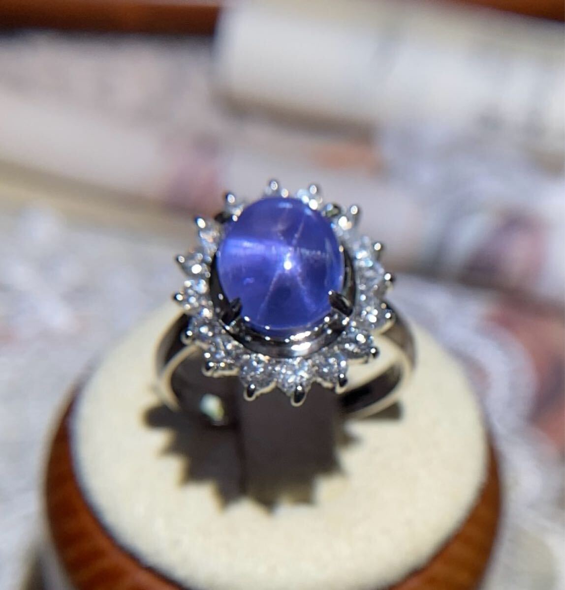 透き通るような青紫のサファイアの中に、光の筋がそっと浮かび上がる様子は、まるで夜空に浮かぶ一番星。その繊細で幻想的なスターは、透明度との見事な共演によって、より一層の神秘性を湛えています。