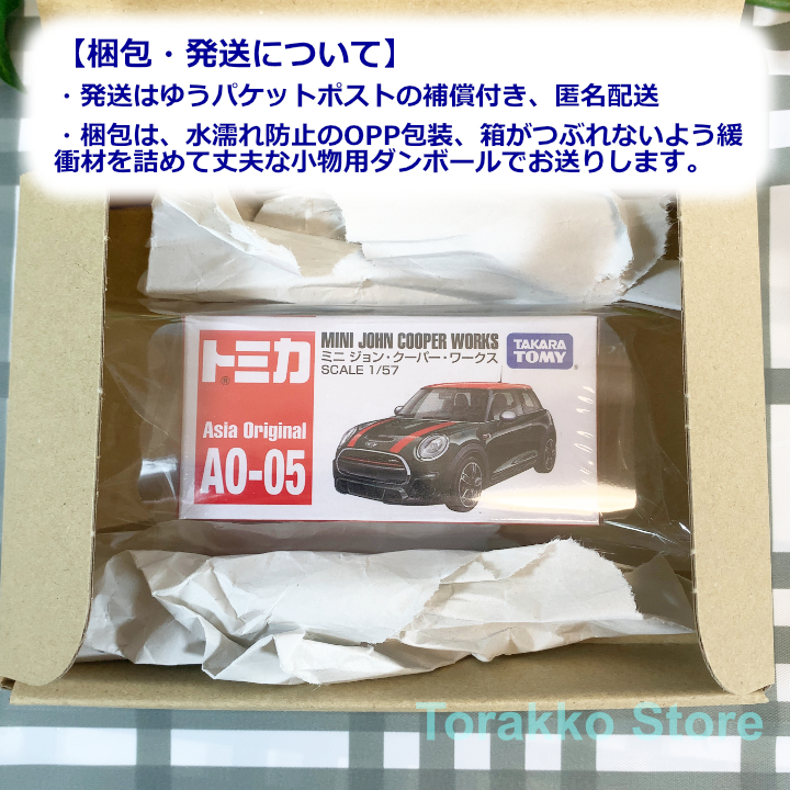 今回ご出品させていただくのは、トミカ(Tomica)のアジア地域限定販売モデルのAO-05 ミニ ジョン・クーパー・ワークス(Mini John Cooper Works)です。BMWの小型車ブランドMiniで展開されている上位モデル車。