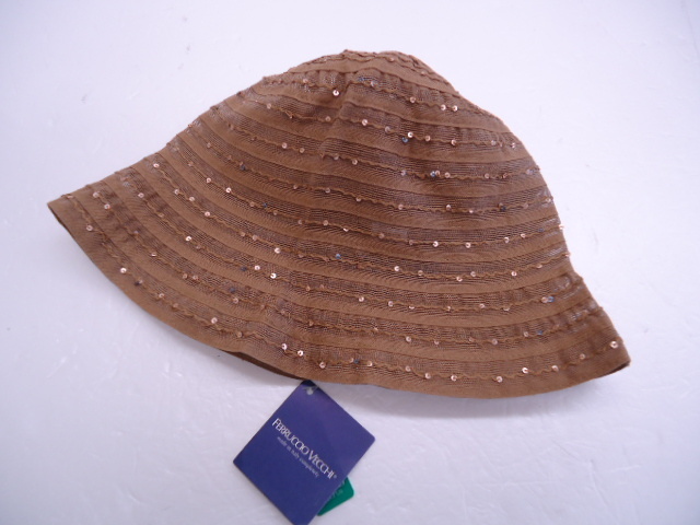 【KCM】sta-536★未使用品★【FERRUCCIO VECCHI】レディース サマーハット 綿/ポリエステル ブラウン系 サイズ M イタリア製