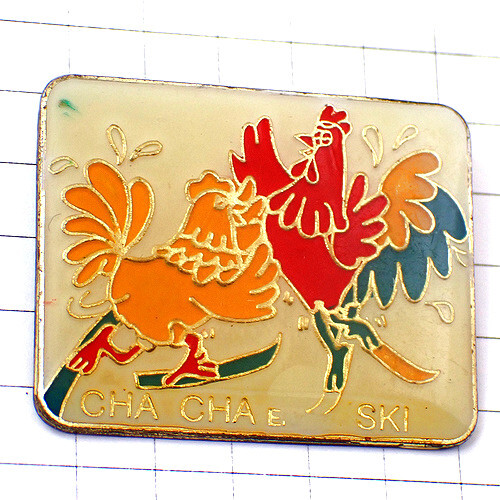"ピンバッジ・スキーすべるニワトリ2羽カップル雄鶏雌鳥"の商品説明 | |
