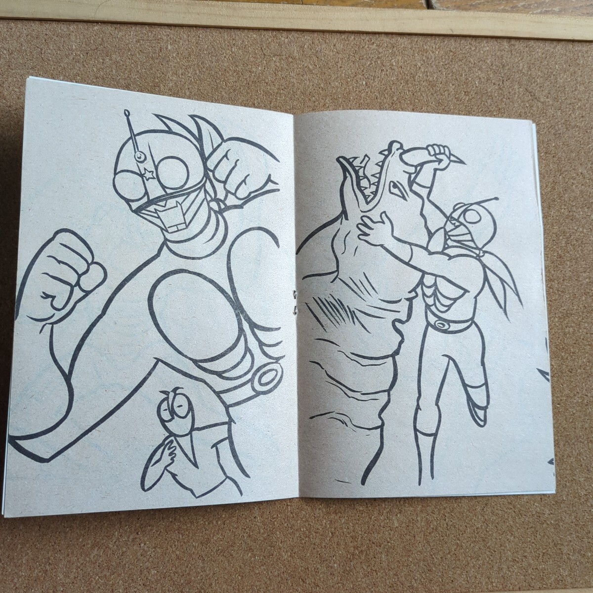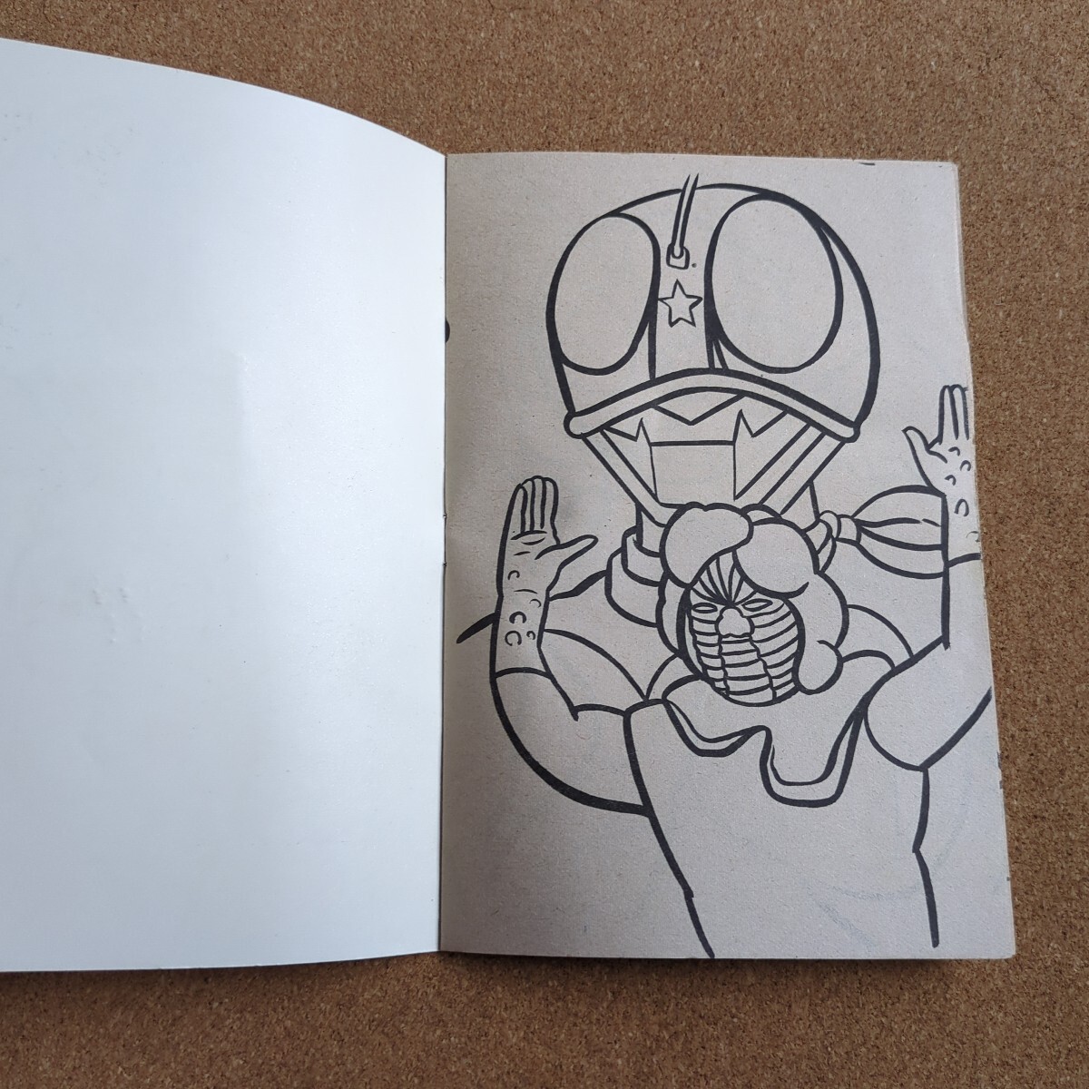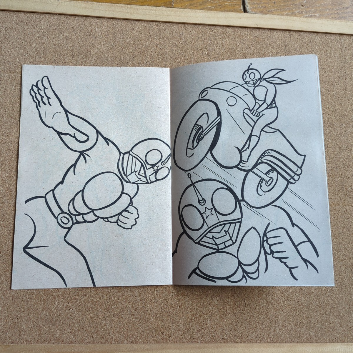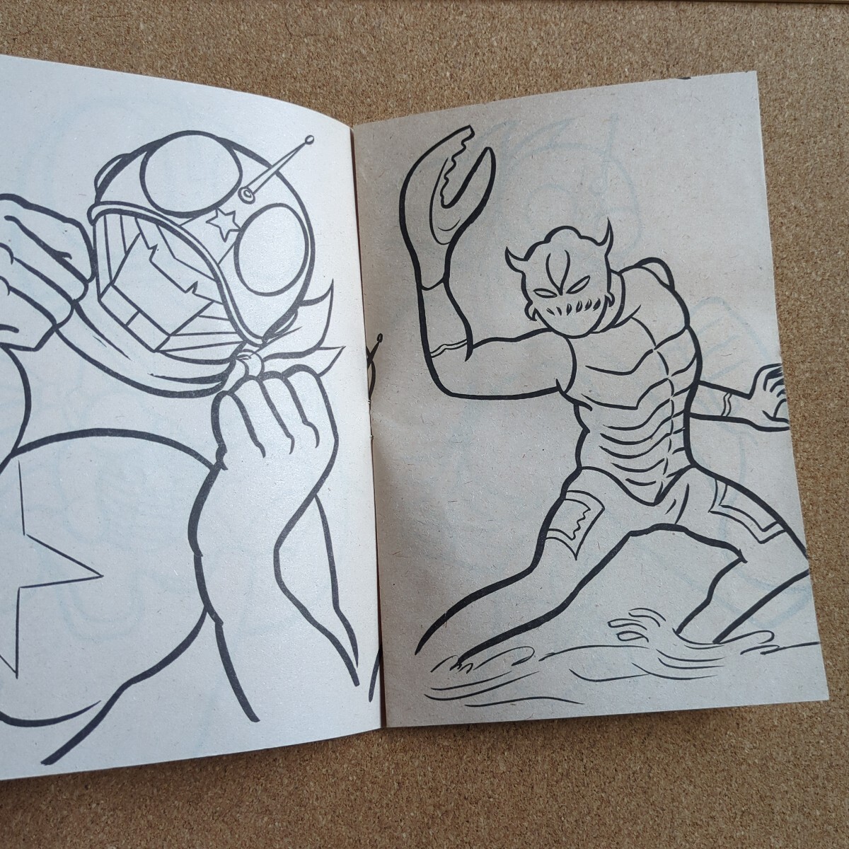 表紙は怪獣ぬりえとなっていますがぬり絵は仮面ライダー風です。
