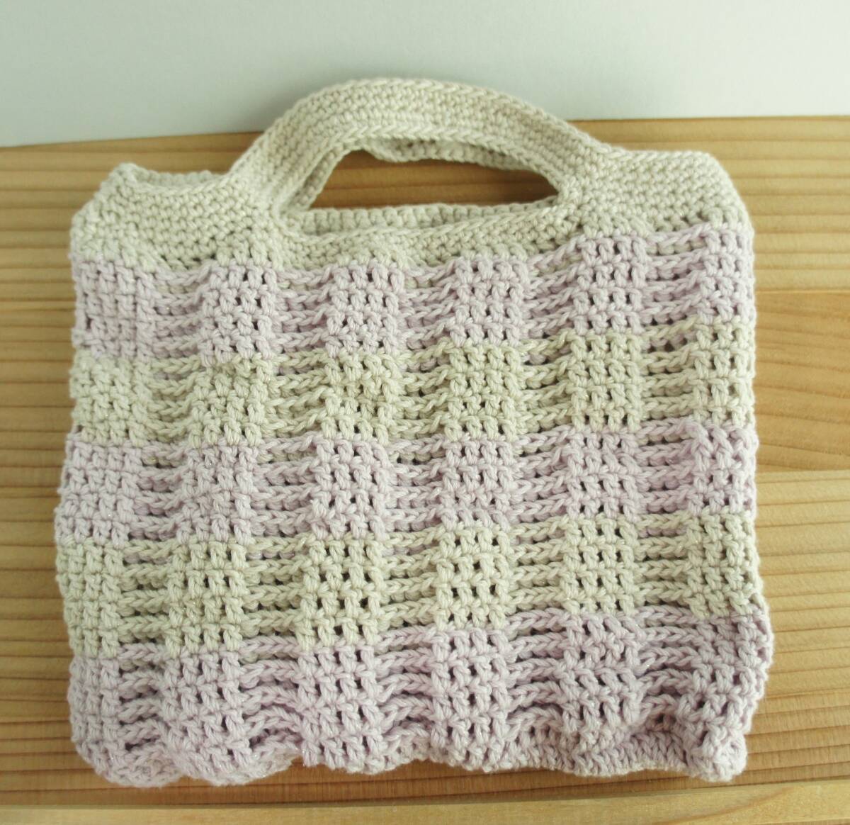 大きさは、約20×19cmです。素材は、パープル・ベージュ(綿95%、ポリエステル5%)、ブラウン・オフホワイト(綿100%)です。(^-^)/ 送料は、定形外郵便で180円です。