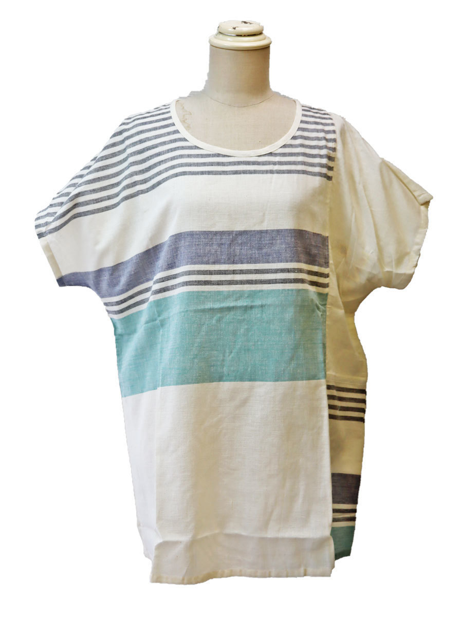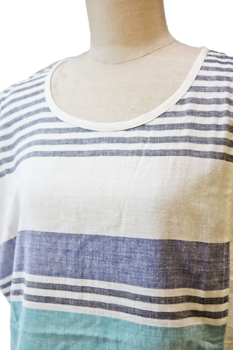 bl223 新品 半袖 涼しい インド綿 チュニックブラウス 夏 ボーダー 綿 Mサイズ レディース