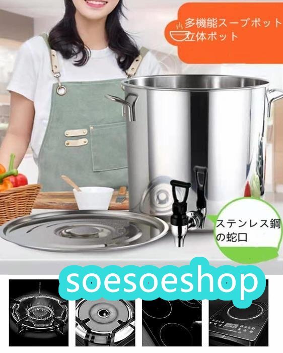 店長特選★寸胴鍋 食品等級 厚のステンレススチール製スープバケツ(蛇口付)すべてのストーブ 飲食店 イベント 煮込み料理 業務用 大容量