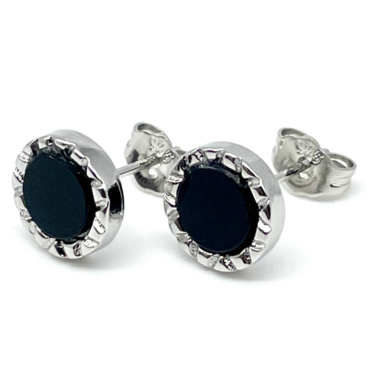 ラウンド ストーン スタッドピアス ◆ キャッチピアス メンズ シルバー925 20G 新品 人気 未使用 ストリート カジュアル 両耳用【PN249-3】