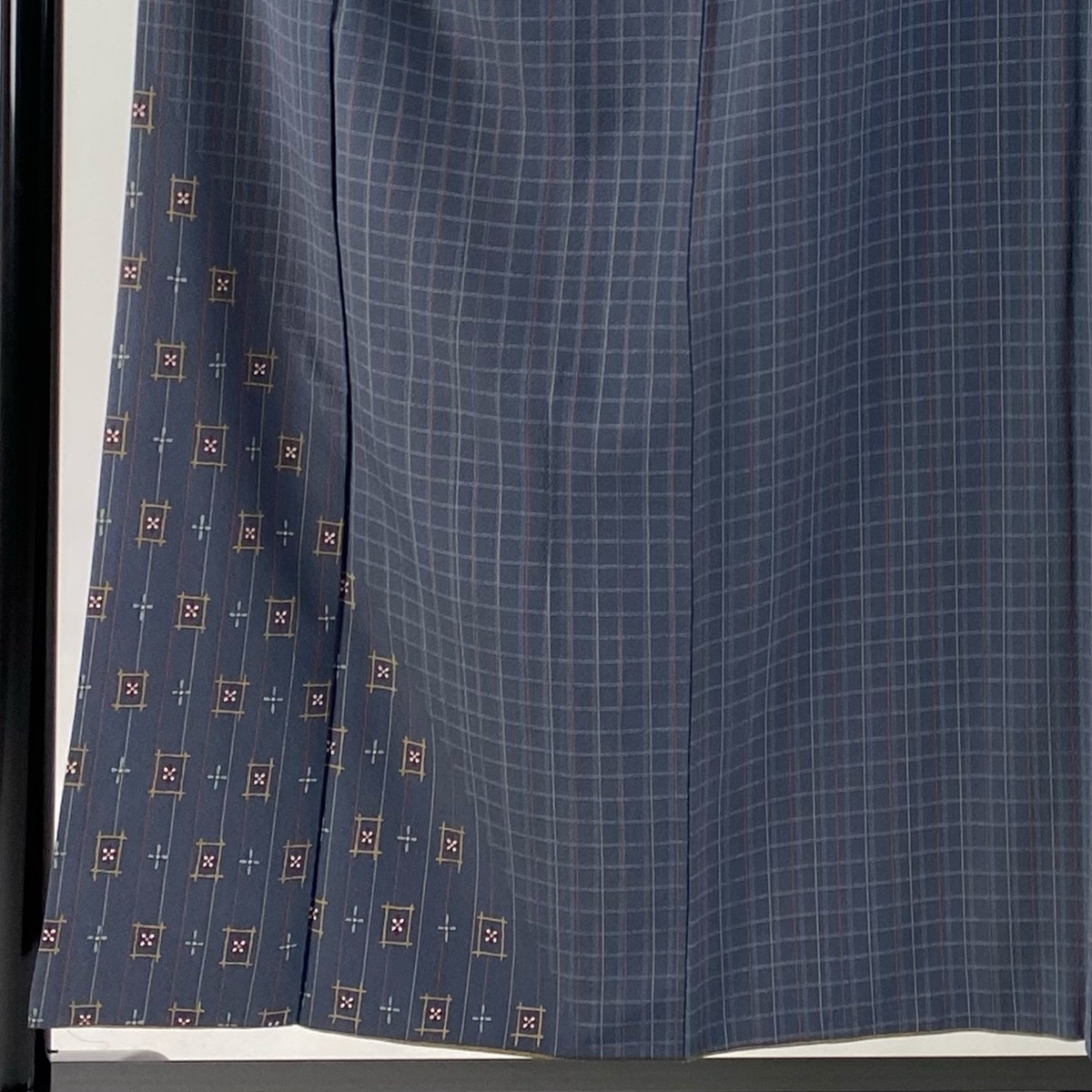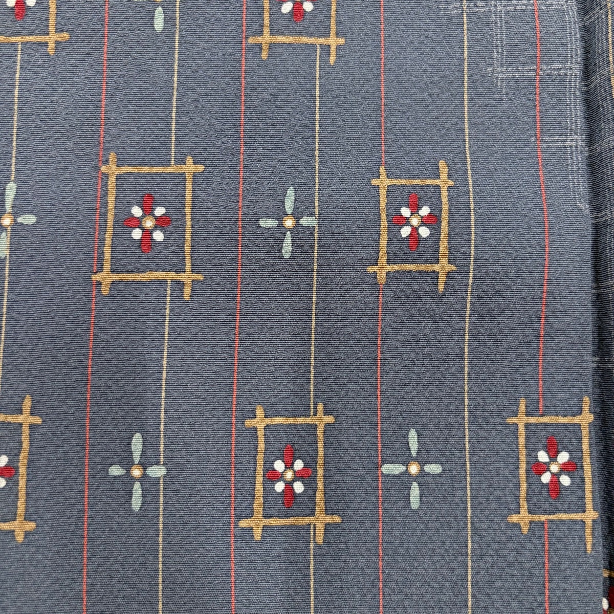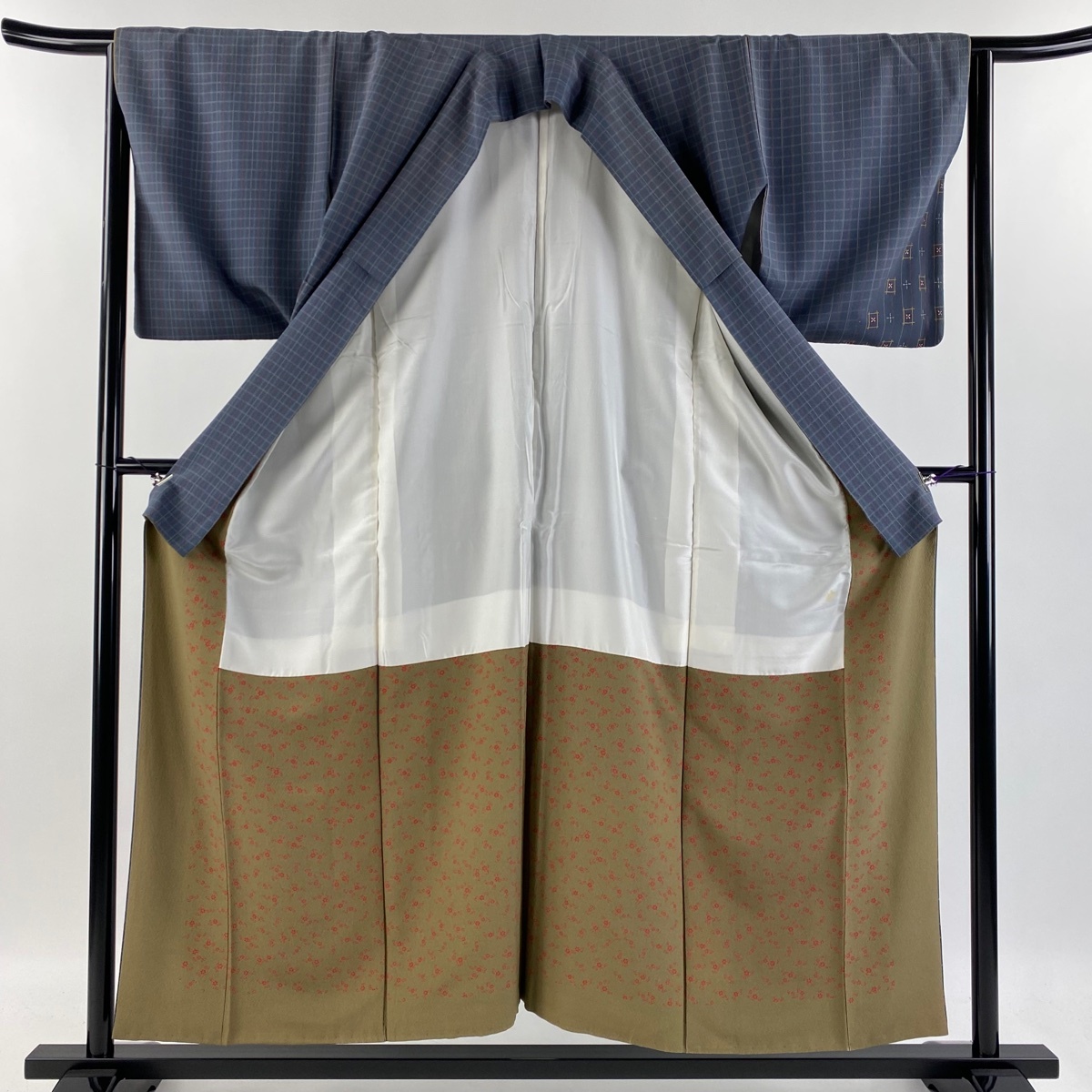 | 付下げ 秀品 格子 花 青灰色 袷 身丈155 裄丈64 M 正絹 【中古】 |