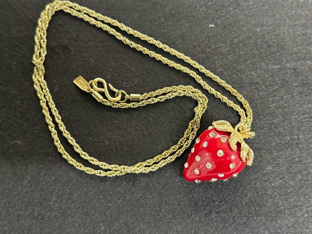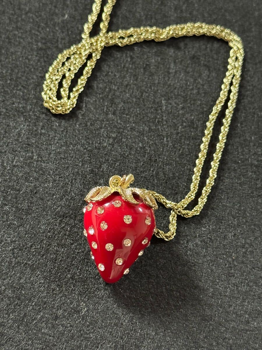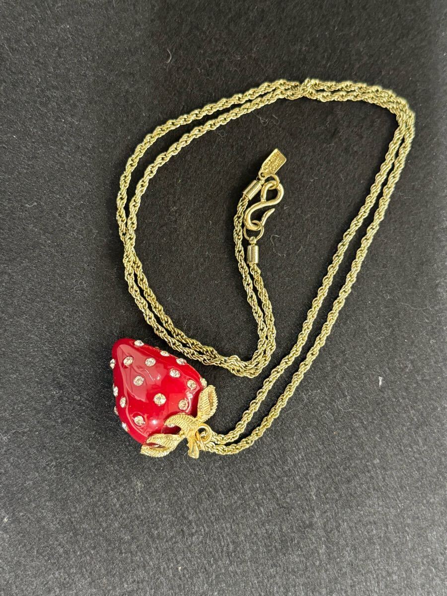 ★Kenneth Jay Lane ケネスジェイレーンネックレス いちご ストロベリー 赤系 ヴィンテージ レッド ストロベリー