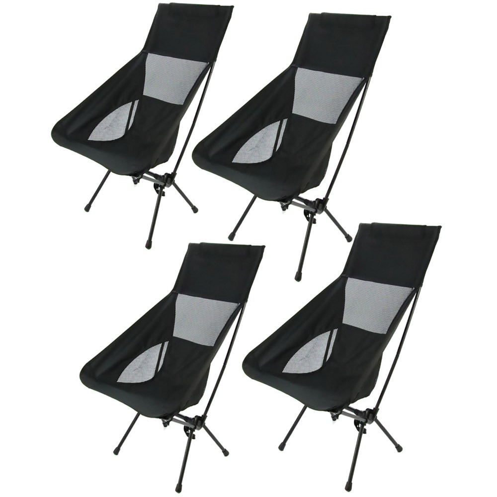 【4個セット】アウトドア 折りたたみチェア 高背タイプ コンパクト収納 キャンプ椅子 折りたたみ式 メッシュ付き 収納袋付き ブラック