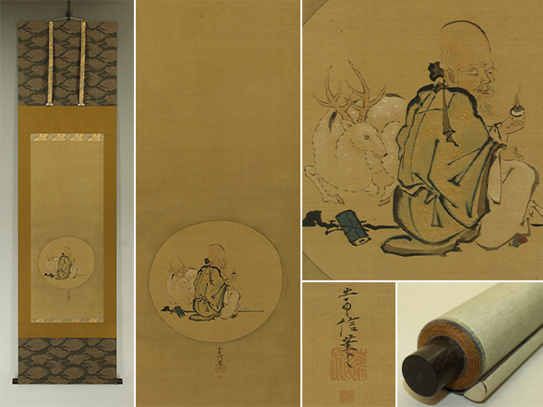 | №2503086【模写】狩野常信【寿老人】◆絹本◆合箱◆改装済掛軸 | |