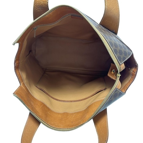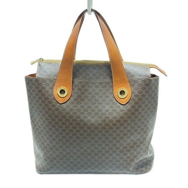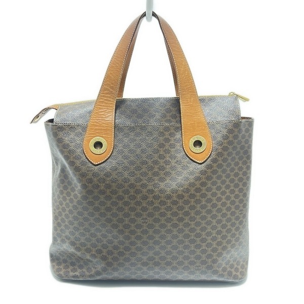 セリーヌ CELINE ハンドバッグ サークルロゴ,マカダム柄 レザー ダークブラウン×ライトブラウン×ブラウン バッグ