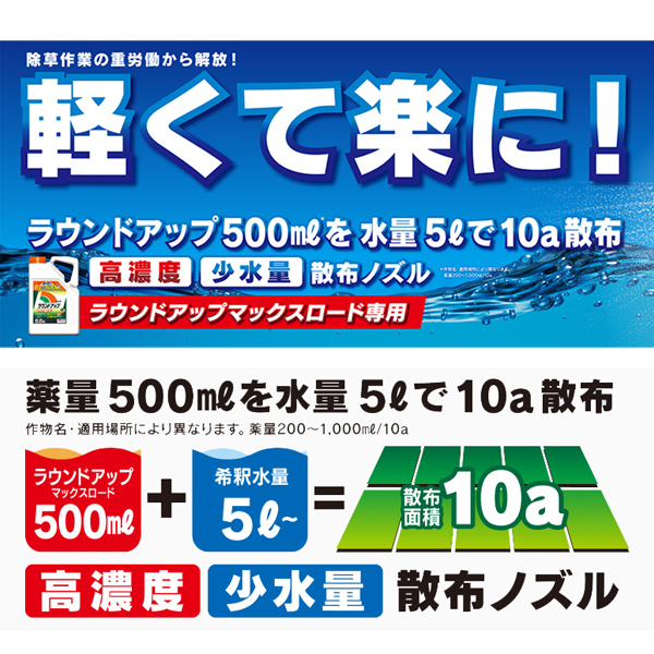 ・除草剤ラウンドアップマックスロード専用設計のラウンドノズルです。