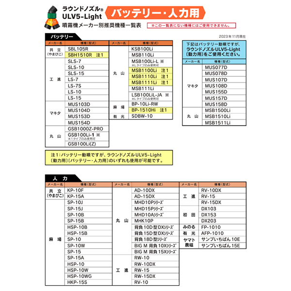 ラウンドノズル ノズル 噴口 バッテリー・人力用 カバーレス ULV5-Light 噴霧機 噴霧器 背負式 2頭口 ラウンドアップ マックスロード 専用