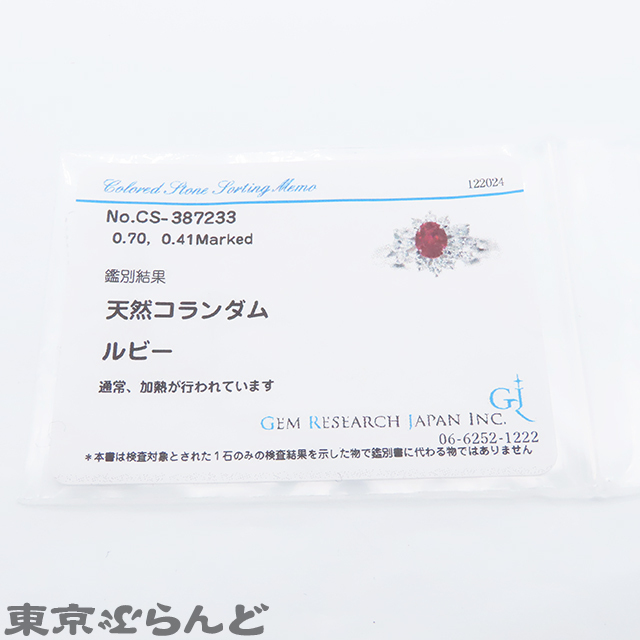 ルビー ダイヤモンド リング 0.70ct 0.41ct 9号相当