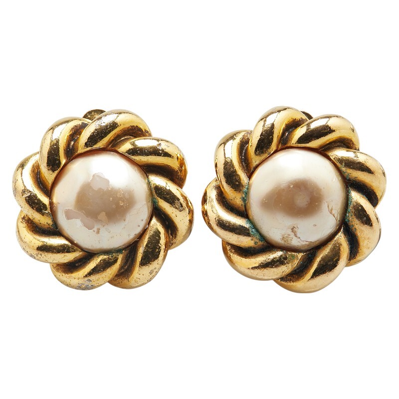 シャネル ヴィンテージ フラワー 花 モチーフ フェイクパール イヤリング ゴールド メッキ レディース CHANEL 【中古】