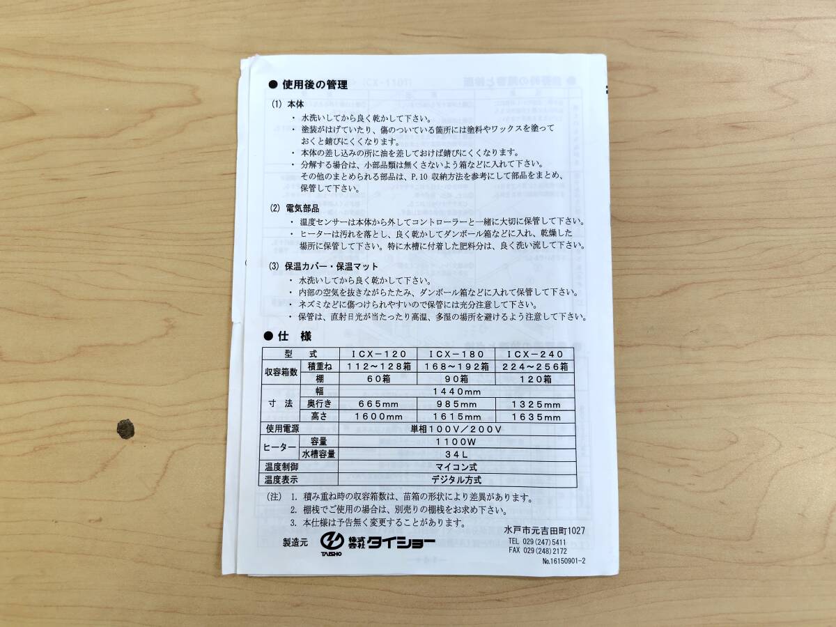 福島 タイショー スチーム発芽器 取扱説明書 ICX-120 180 240 取説 マニュアル 店頭販売 農機具市場 二本松